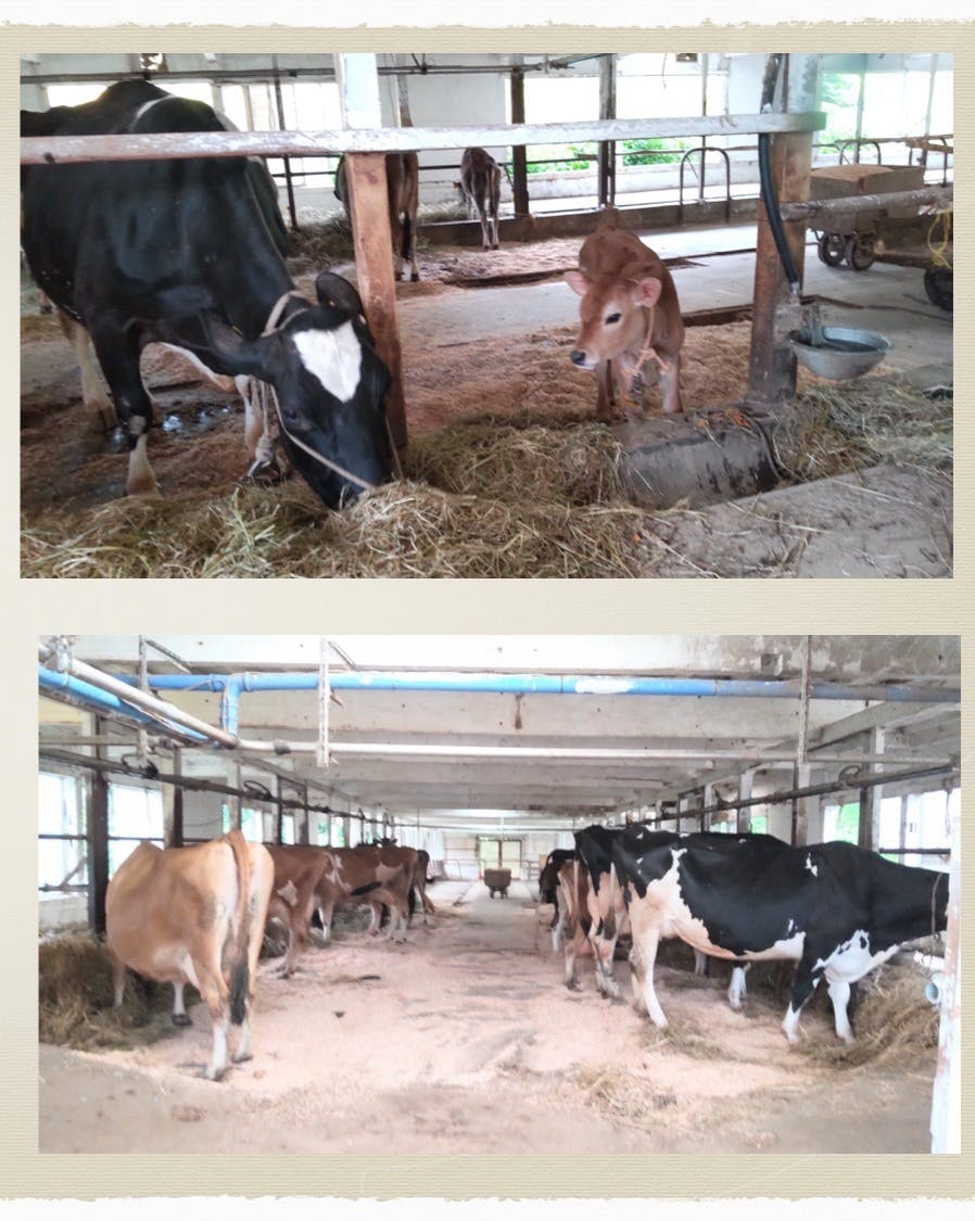 わたなべ牧場の様子~元々ホルスタインもいましたが、3頭Feel at home🍀に迎えたので、現在はジャージーが15頭、そのうち搾乳牛が8頭、繋ぎ飼いです。そのうち、チッチとななはFeel at home🍀に迎えることが決まっています。(写真は少し前の様子です)