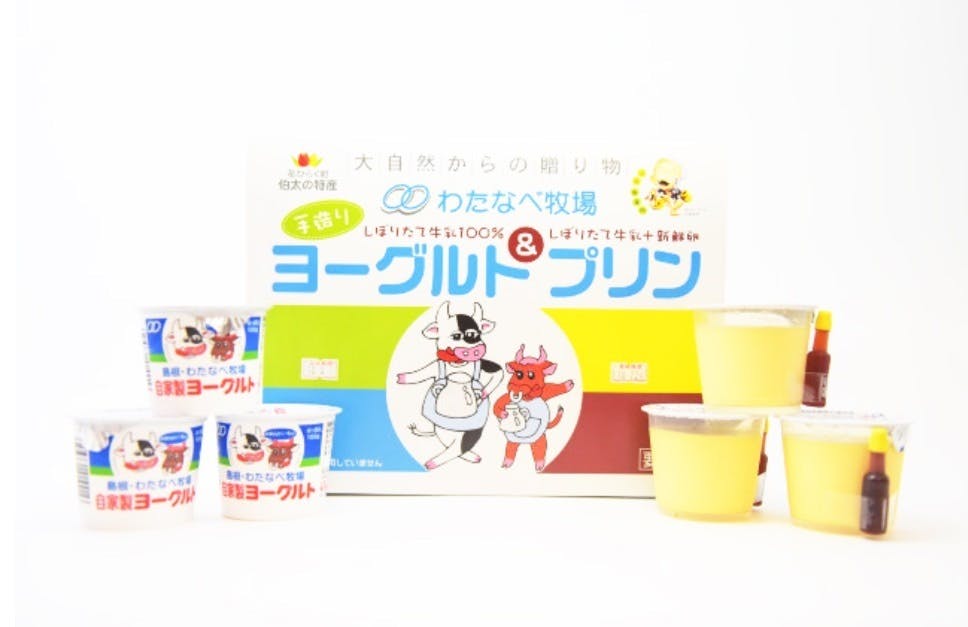 ◾︎名称:わたなべ牧場「手造りプリン」 ◾︎原材料名:生乳 島根県、卵 島根県、粗糖 鹿児島県、カラメル~三温糖 南アフリカ、タイ、日本(北海道、沖縄県、鹿児島県)◾︎内容量:100g◾︎賞味期限:別途商品ラベルに記載(冬期~約9日間、夏期~約7日間) ◾︎保存方法:冷蔵保存◾︎製造者:(有)わたなべ牧場