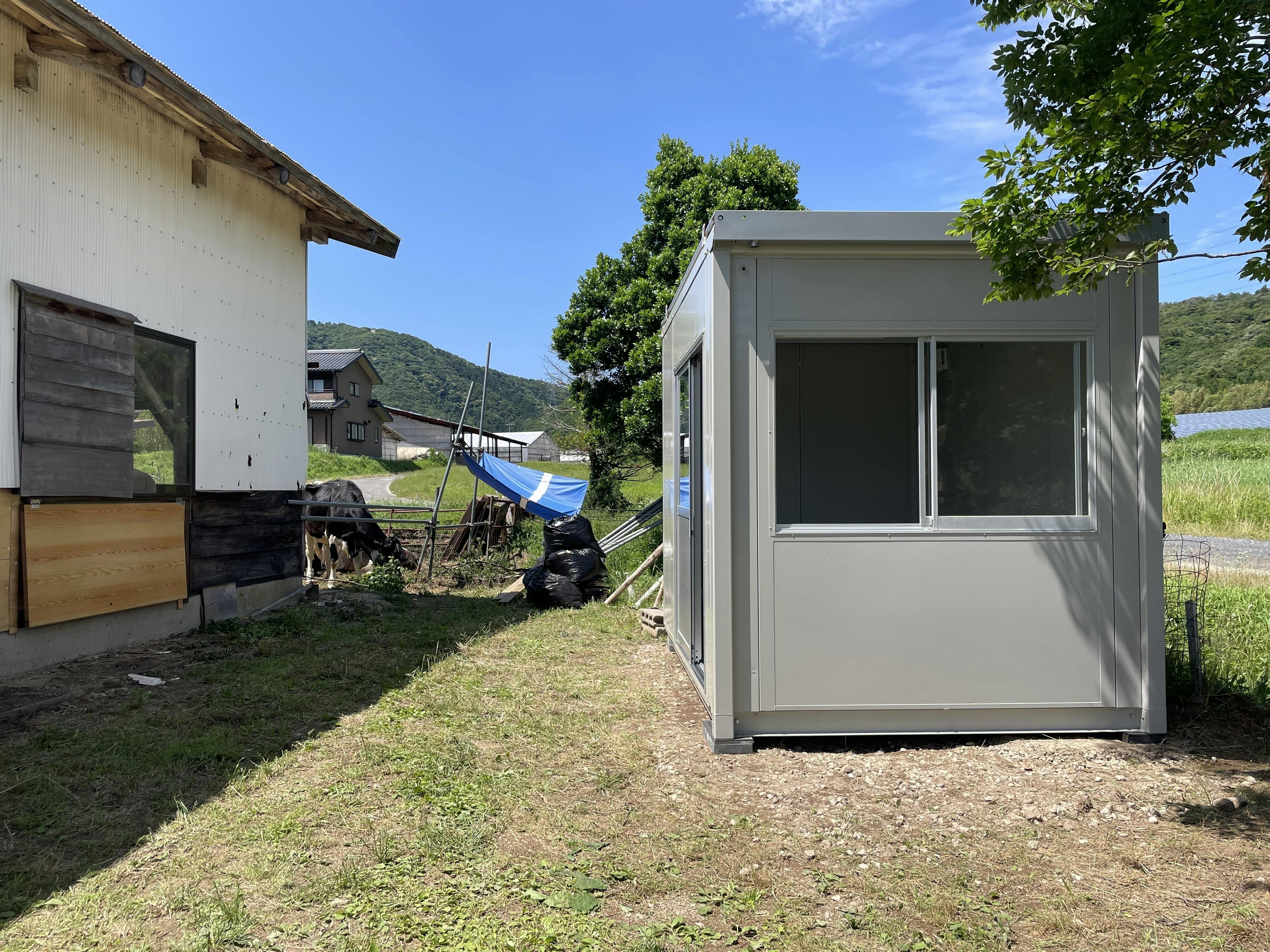 2025/06/17 19:35やっと…キッチン用のプレハブを設置出来ました!やっと…キッチン用のプレハブを設置出来ました!ユニック車を入れるため、お父さんが入り口の木を切ってくれました!葉っぱをみんなで頂きましたよ- ̗̀ ( ˶'ᵕ'˶) ̖́-作業中、カミとはなは気になって覗いていました!プレハブは、これから電気、水道工事をします!外観は自分達で塗装する予定です。19日にはよつばを迎えます!連日、ドタバタ劇場のFeel at homeですが、みんなのために前進あるのみです(ง •̀_•́)ง頭数が増え、1ロールが2日で無くなるようになりました!今はまだ会長のご好意でわけて頂いていますが、わたなべ牧場が牧草作りを他の方にお願いされることになったので、新しい牧草のロールからは購入することになります。引き続きご支援頂けると助かります!よろしくお願いいたしますm(_ _)m もっと見る