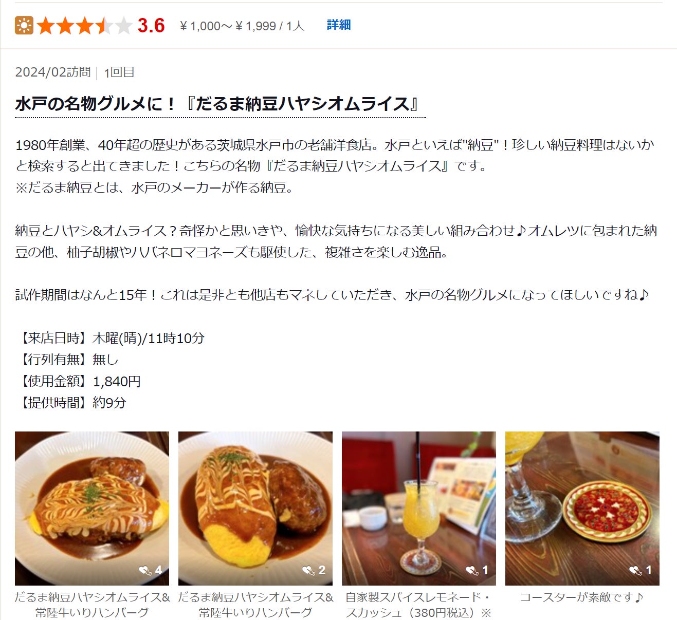 当店は、1980年に叔母が喫茶店として創業し、2016年に私が引き継ぎ洋食店として移転リニューアル、今年で44年目を迎えます。水戸の名物を使用した「だるま納豆ハヤシオムライス」をはじめ、常陸牛いりのハンバーグや地産ポークのステーキなど地元食材を取り入れた、どこか懐かしさを感じるレトロな洋食喫茶レストランです。