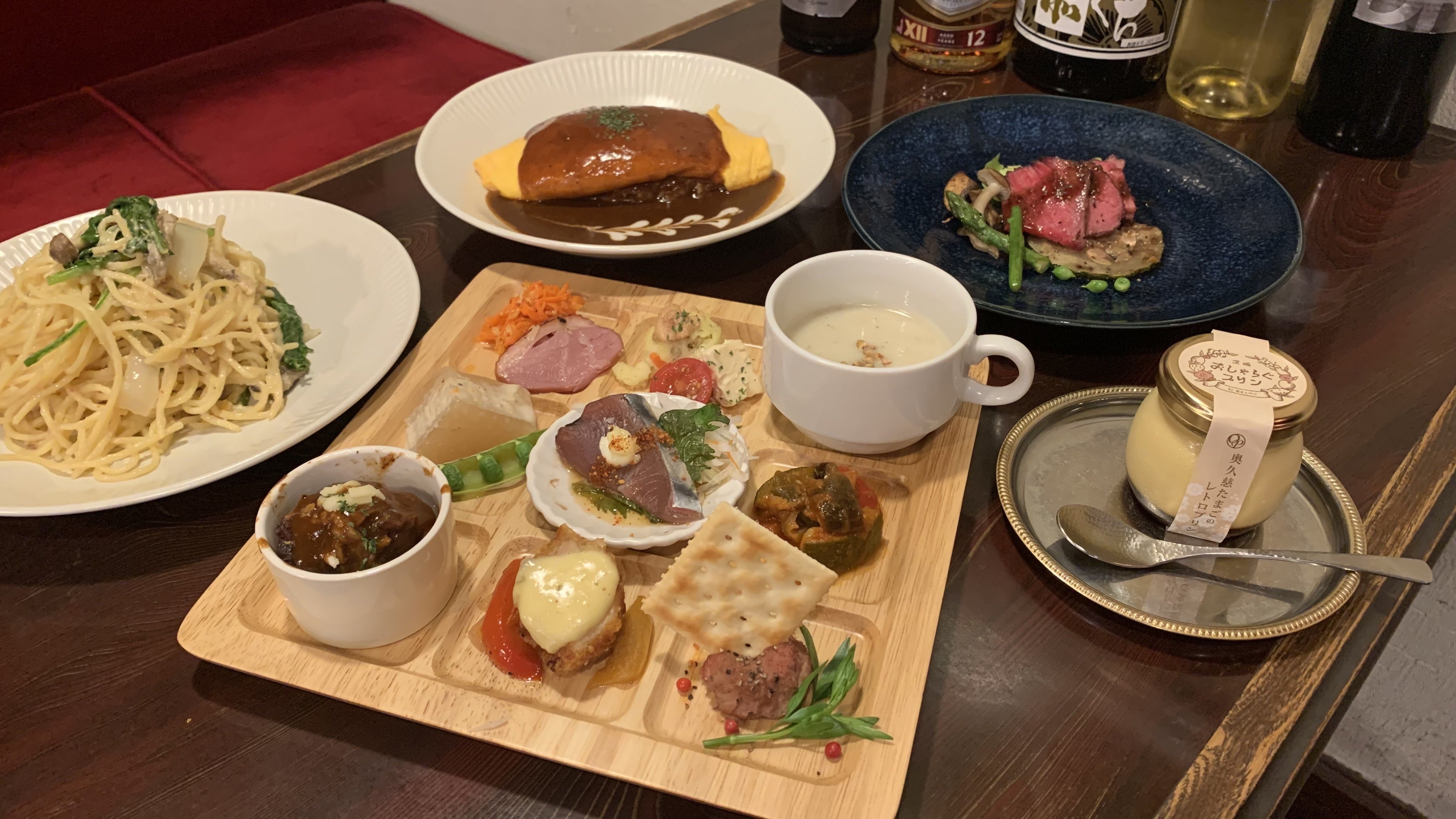 季節の前菜盛り合わせ、ザブトンローストビーフ、お好きなオムライス食べ放題に、自家製おしゃらぐプリンまでついた、花きゃべつを丸ごとお楽しみいただけるコースです。