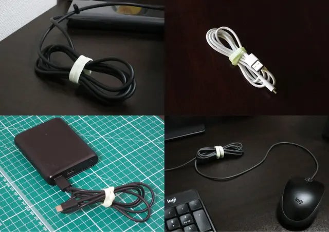パソコン周辺やデスクのケーブル類は、絡まったり、こんがらがったり、散らかりがちです。特にバッグの中や暗い所だと、どこに置いたのかも分からなくなります。