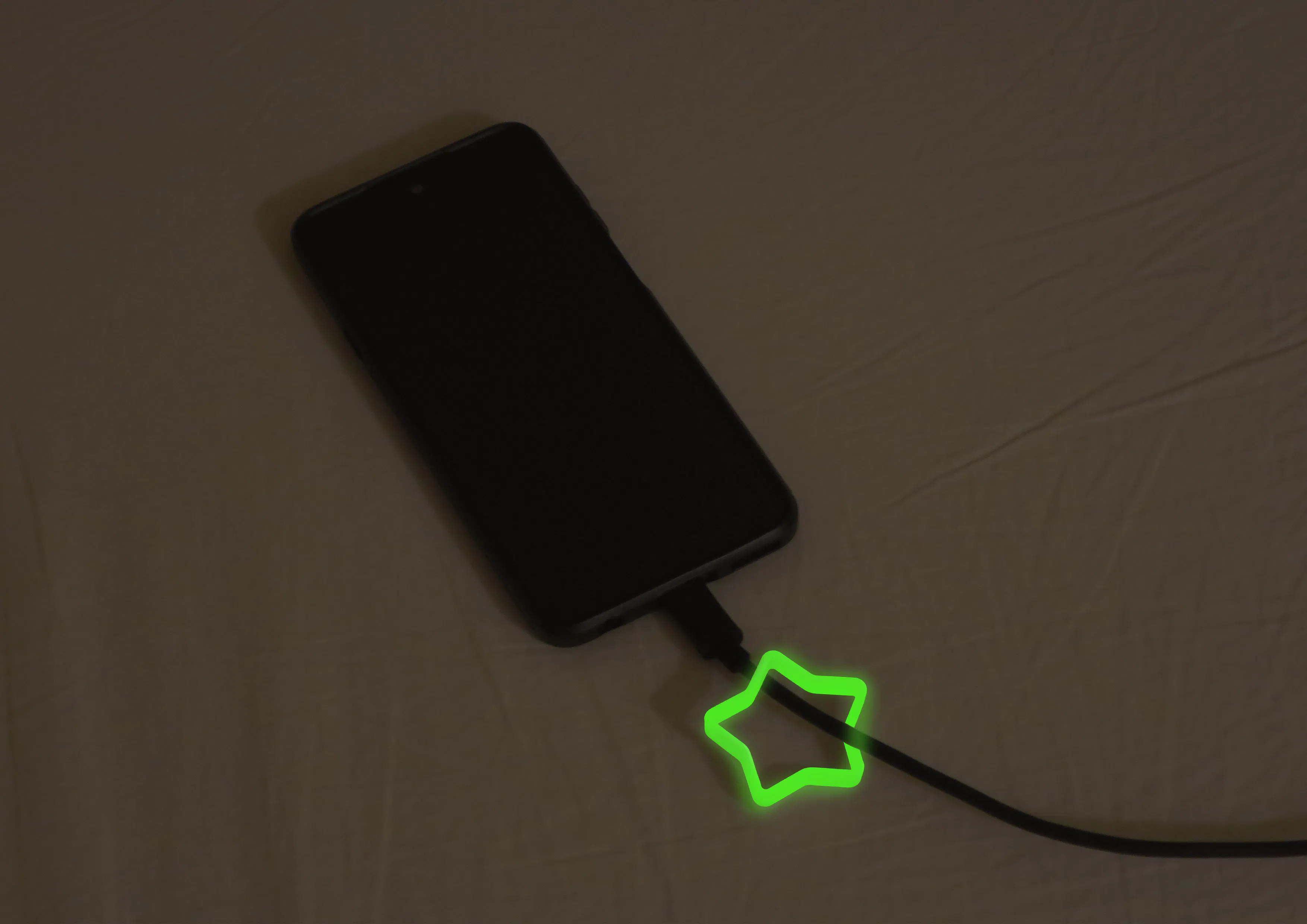 寝室の充電ケーブルに付けておくことで、夜中や停電時に目印になり、すぐに見つけられます。
