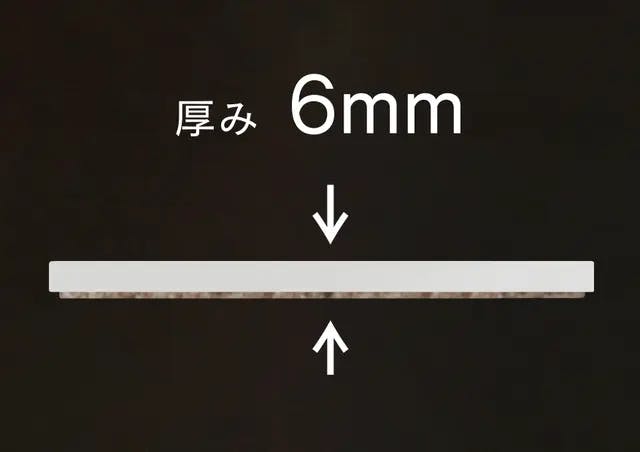 このトレーコースターの厚みは、わずか6mm。厚みのあるコースターは、その分だけグラスの倒れる危険が増します。重さも50gしかないので、持ち運びもしやすくなっております。一般的なコースターに見られる、分厚さや重たさがありません。