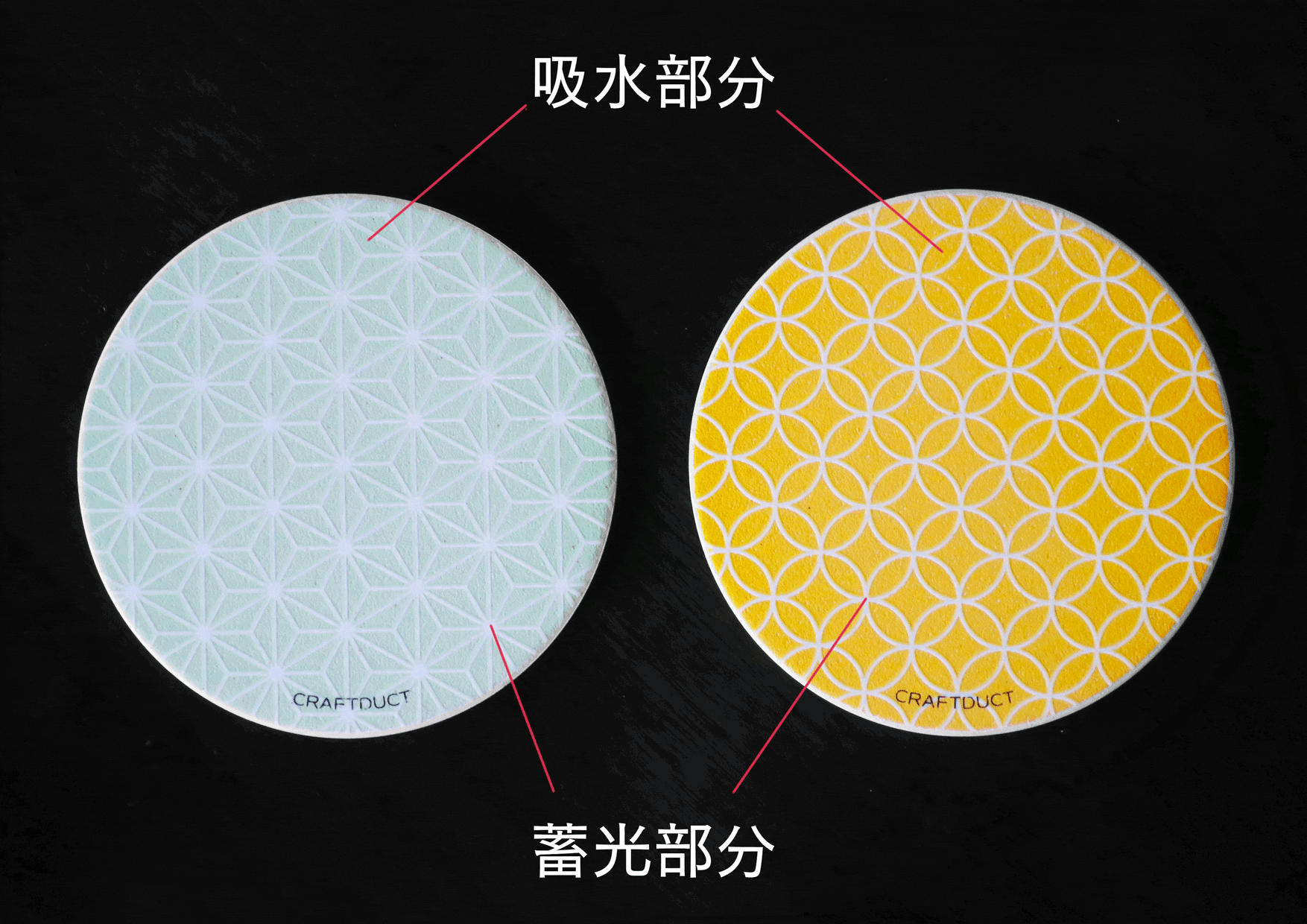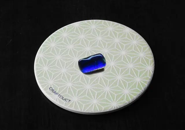 美しい伝統文様と伝統色のデザインは、そのままでもインテリアとしても部屋に置いても美しく映えます。そして暗い所で目印になり、玄関先や寝室にコースターやトレーとして置いておくと場所が分かります。