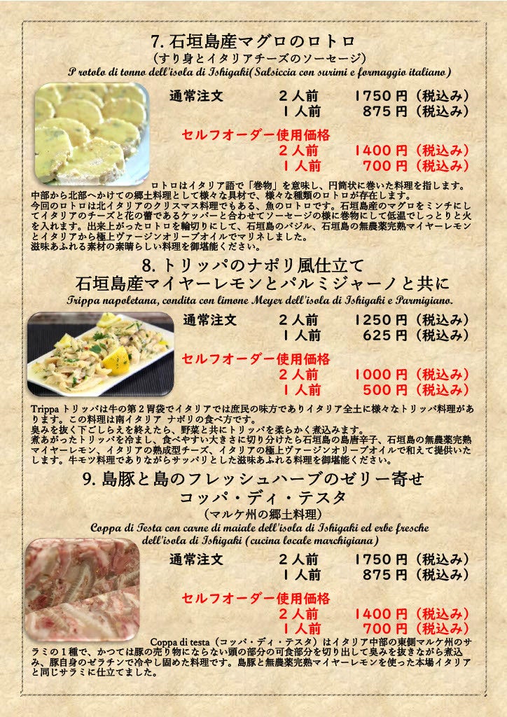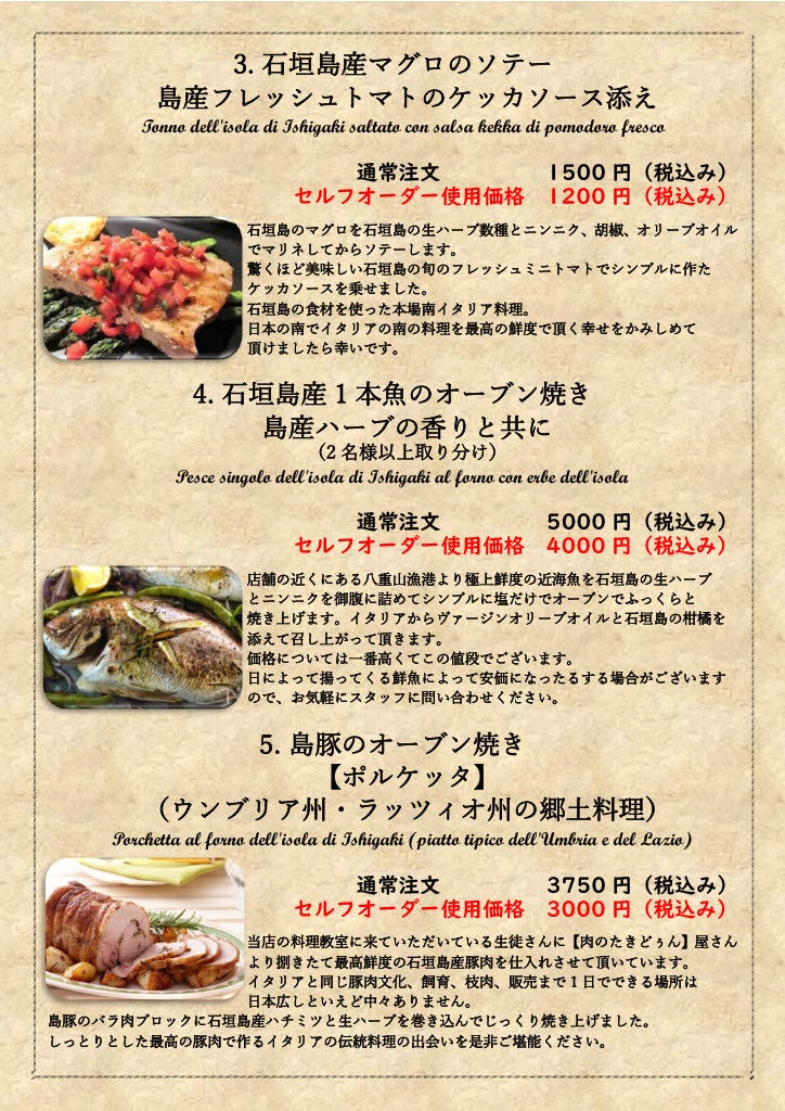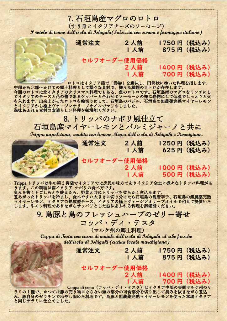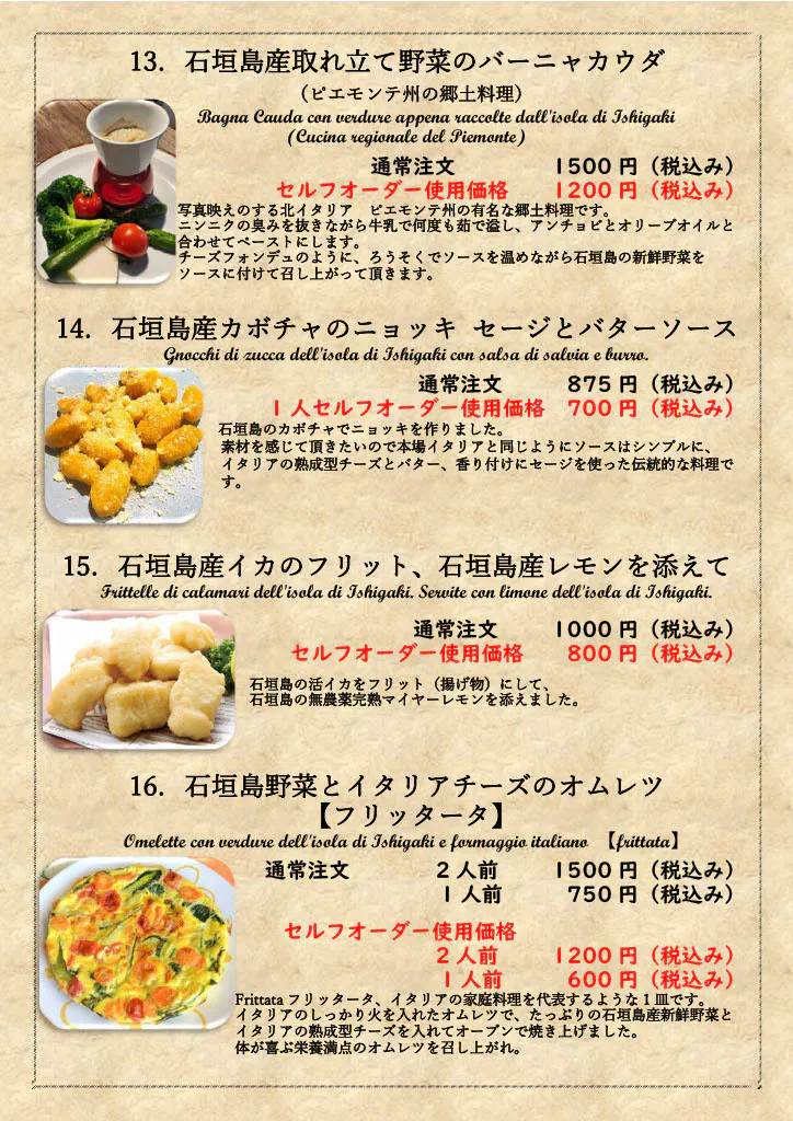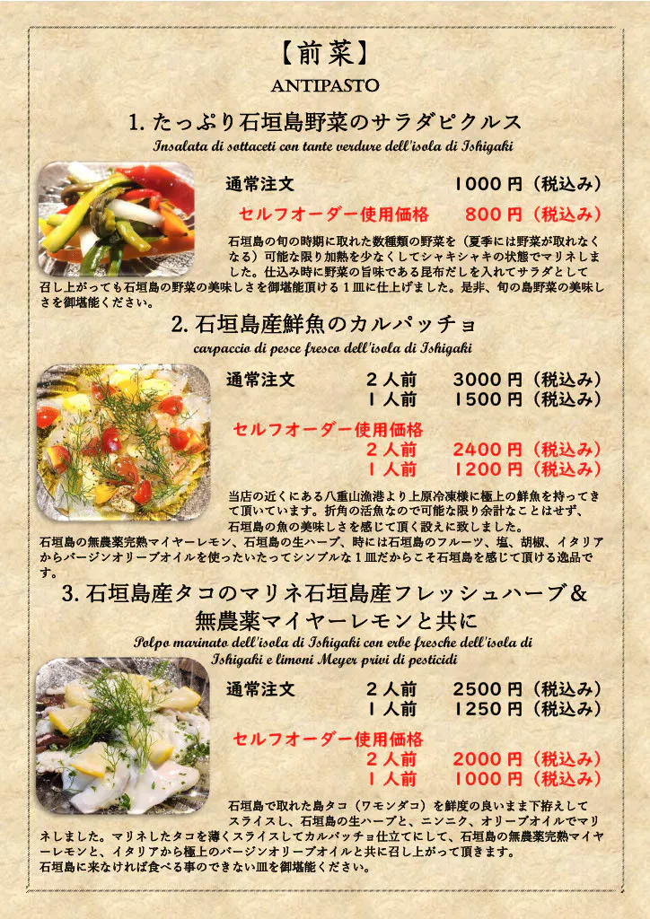 また石垣島に来る事のできない方でも八重山の1次産業の方を応援しながら、冷凍された石垣島の産物で作られたイタリア郷土料理の数々をご自宅で召し上がっていただきます。