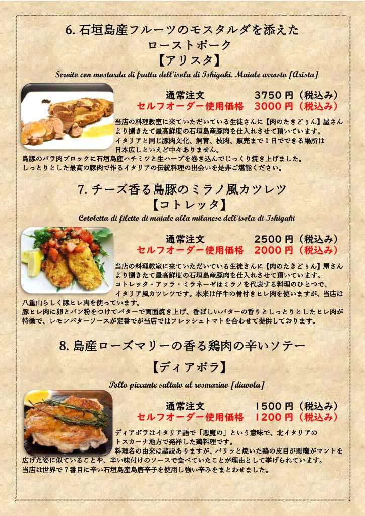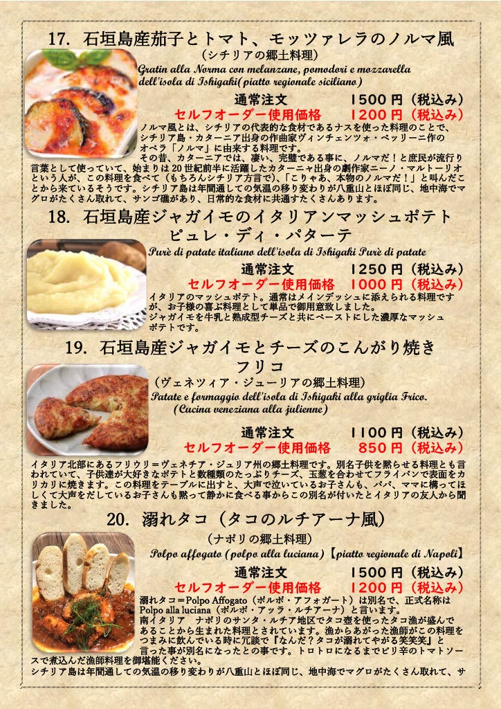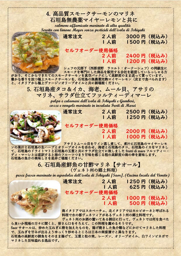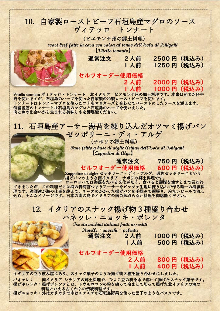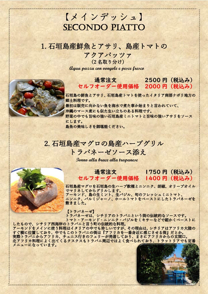 また石垣島に来る事のできない方でも八重山の1次産業の方を応援しながら、冷凍された石垣島の産物で作られたイタリア郷土料理の数々をご自宅で召し上がっていただきます。