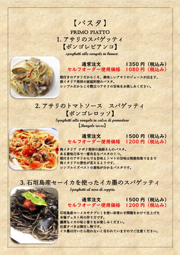 御店のこだわりは本場イタリアの郷土料理を可能な限り地元食材を使い調味料は塩、胡椒だけでイタリアのお母さん(マンマ)の味を手作りにこだわって作っています。