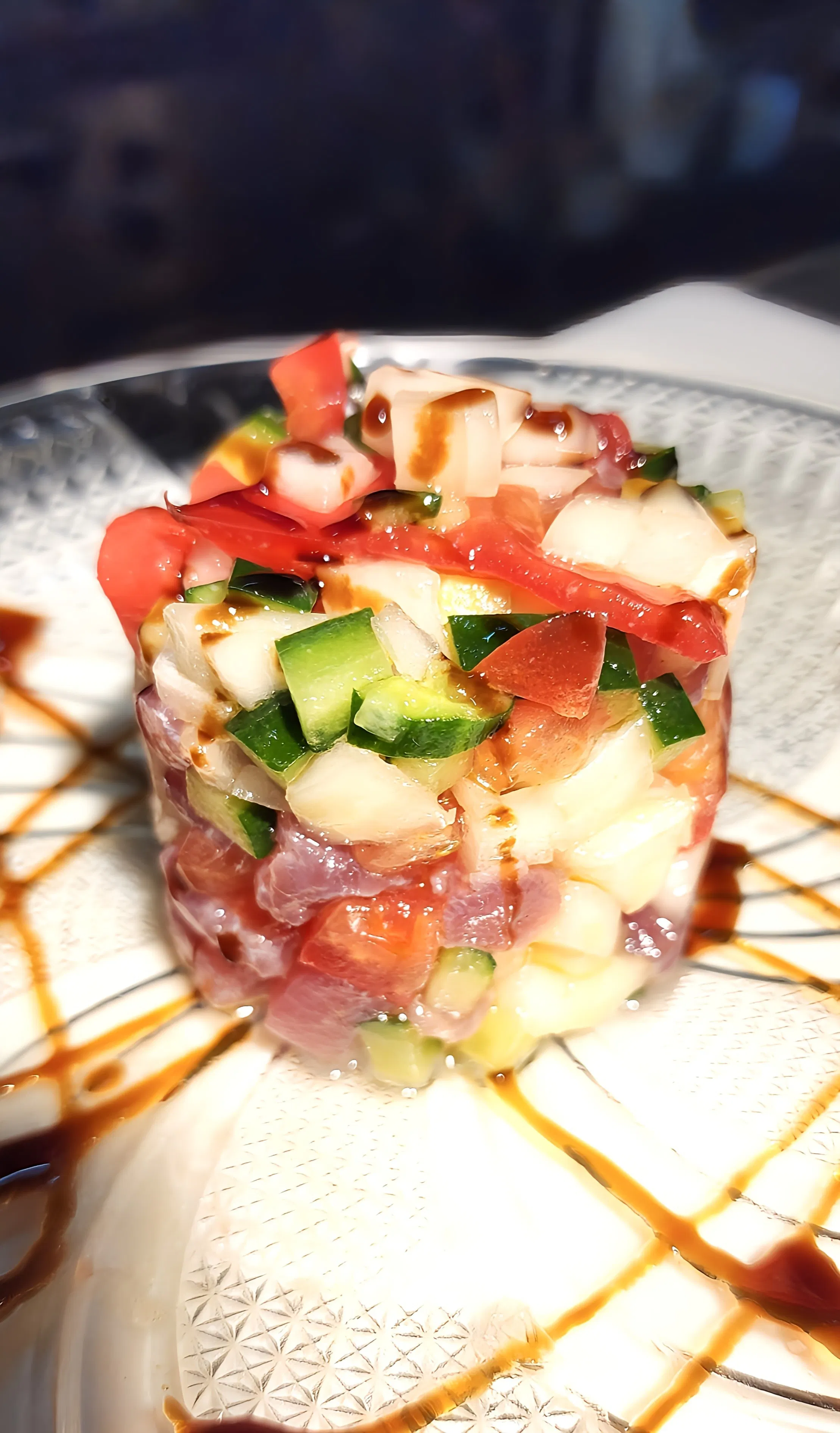 2024/04/20 06:01石垣島では様々なマグロが水揚げされます。これから2ヶ月くらいは本マグロの季節です。今回の料理は石垣島のキハダマグロと、新里農園さんからミニトマトキュウリを使った【石垣島産キハダマグロの刺身と石垣島野菜のラビゴット和え】を当店の実例として公開致します。マグロの柵に塩を当てます(柵の厚さ大きさで塩の量と浸ける時間を変えます)発色が良くなり塩が廻って余分な水分が出たら1度洗ってしっかりと水分を拭き取ります。柵のマグロを小さなダイスカットにして真空包装機でパックします。これをアルコール瞬間冷凍機【凍眠】で冷凍します。↓↓↓↓↓こちらが作業風景の動画です。https://youtube.com/shorts/f87r-guZDbo?si=nLtIcclt4_4EROOb 瞬間冷凍したマグロはマイナス60度のアイスストッカーに入れると半永久的に鮮度を保ち保存ができます。使用するときは、冷凍したおいたマグロを流水解凍して石垣島の野菜と調味料と和えて盛り付ければ、いつでも石垣島の鮮度の良いマグロを食べられます。また、旬の時期に大量仕入をする事で島の一次産業の方々にも利益を産み共に活性できると思っています。更に先々全国配送ができるようになれば当店だではなく多くの方々に喜んでいただきながら、雇用を増やし、高水準の給与を与えることができた上で、島の生産者さんも潤い、石垣島の経済的発展に寄与できると思っています。 もっと見る
