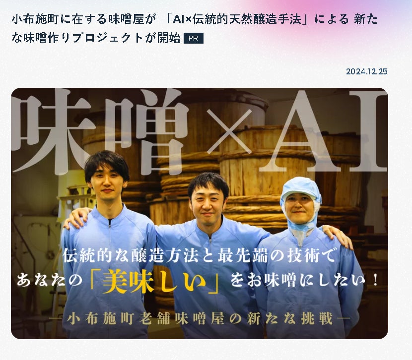 小布施町に在する味噌屋が 「AI×伝統的天然醸造手法」による 新たな味噌作りプロジェクトが開始