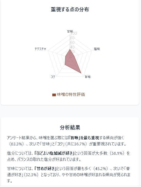 AIを用いた分析結果から、甘め、旨みを重視する方が多い傾向がありました。