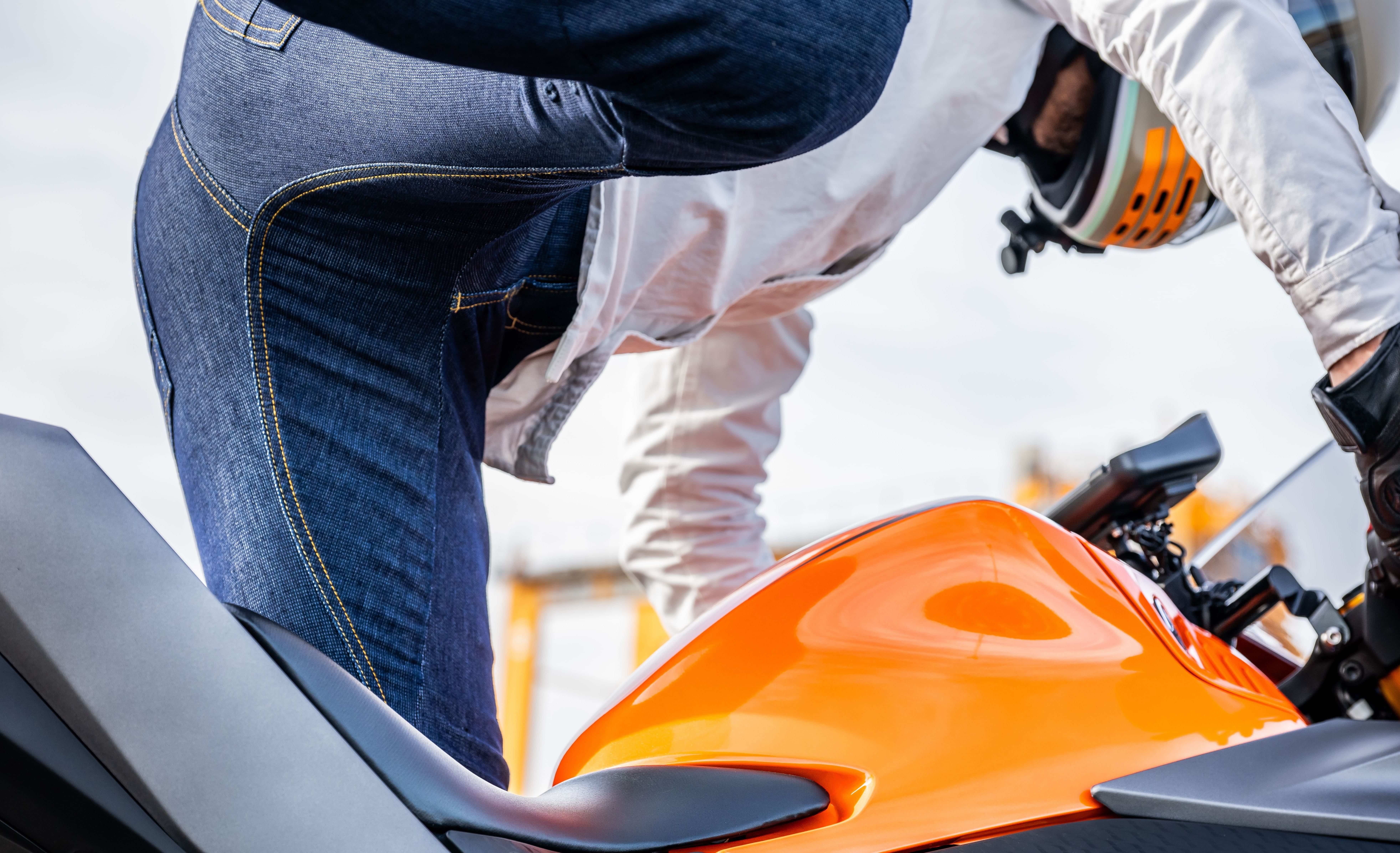 【フィン付き空冷式ジーンズ】の空冷式機能にフォーカスしてきましたが、ここからはライディングパンツの本質の機能をご紹介していきます!「ライダーはバイクに乗ってなんぼ」ですからね。【フィン付き空冷式ジーンズ】はオートバイ専用設計になっています。