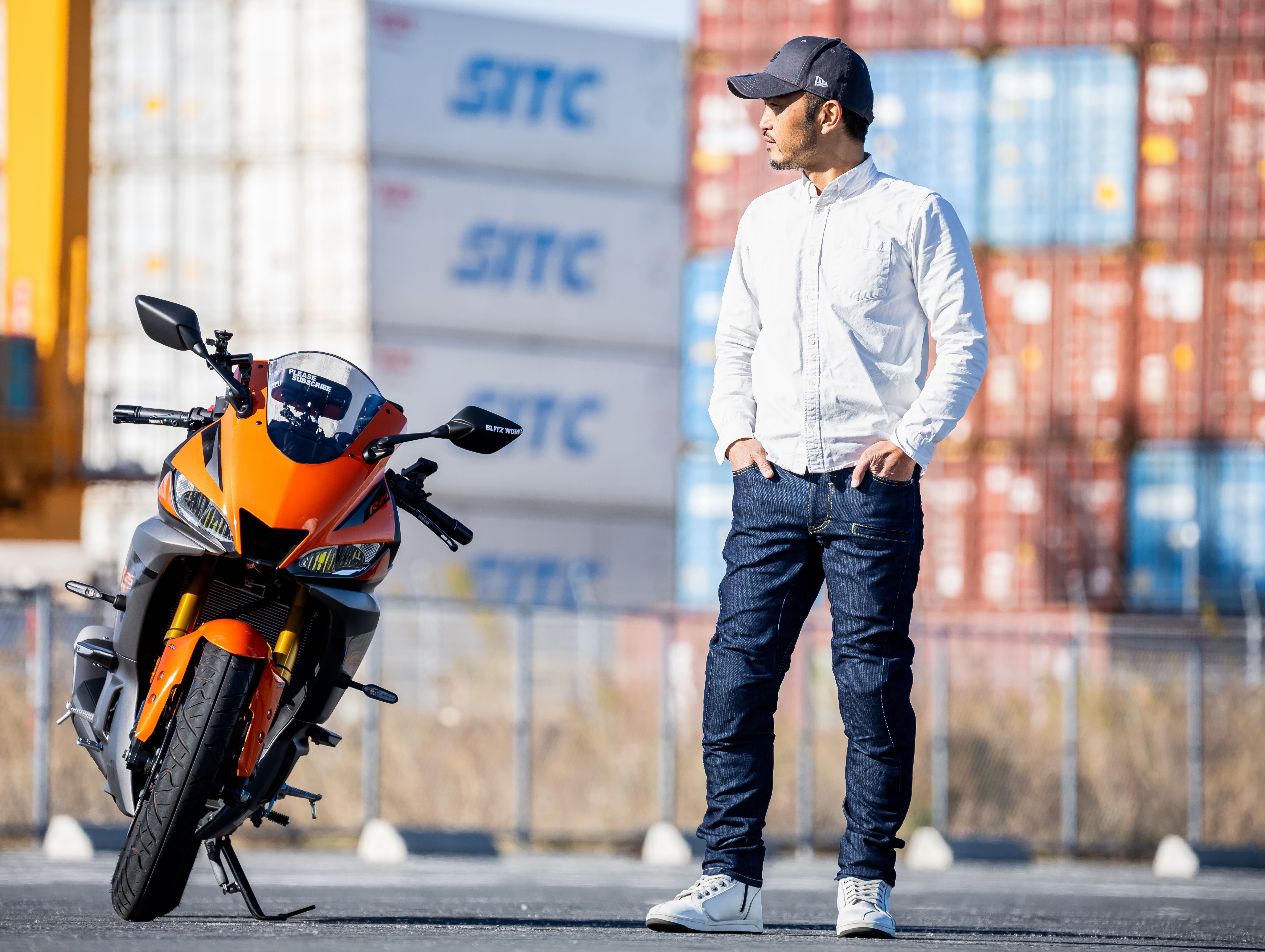 バイクに乗らない時も夏の街着ジーンズとして着用していたという声もチラホラ・・・バイク用であり街着用でもある・・・それがローリー青野が目指す バイク×ファッション なんです!