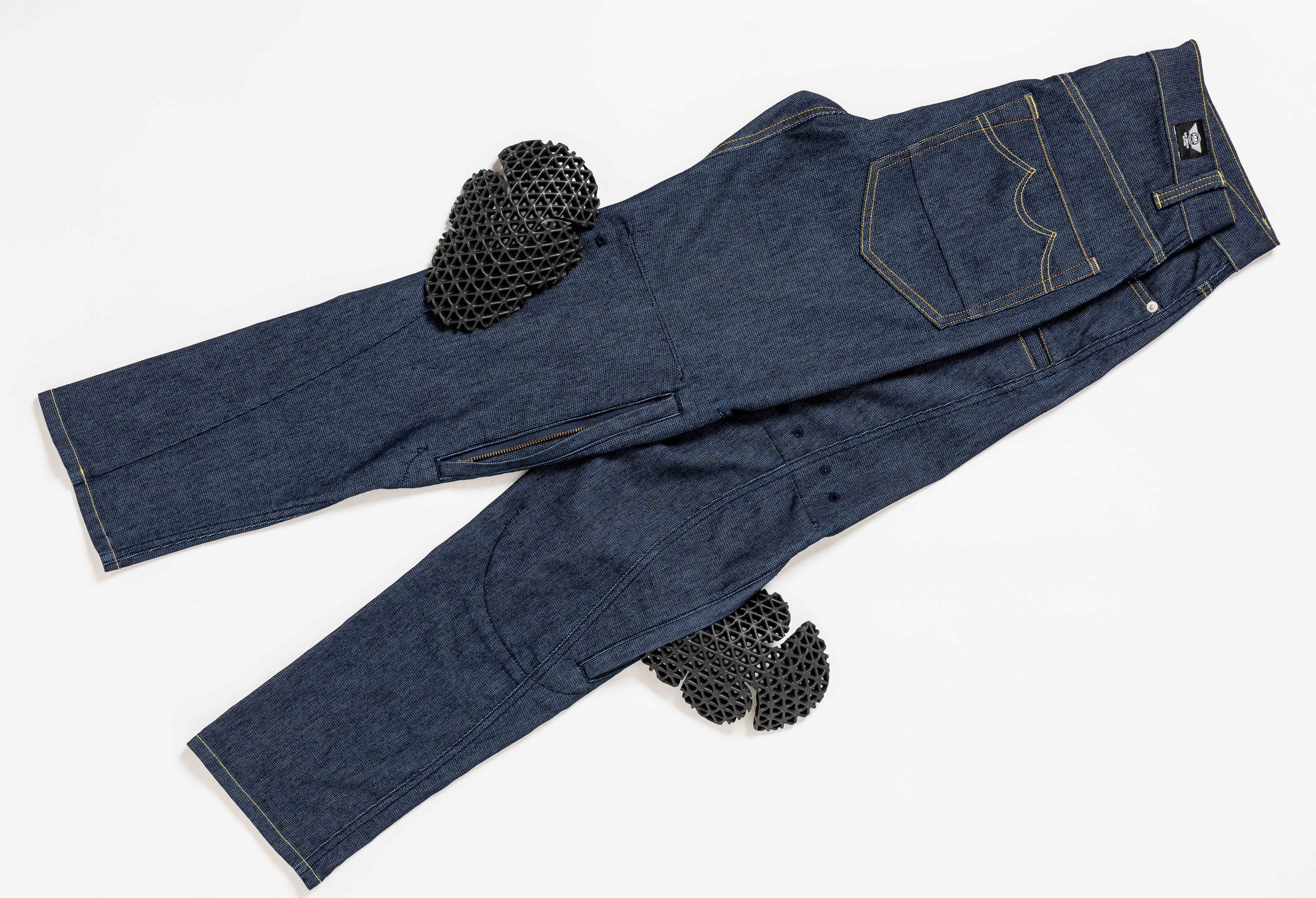 【フィン付き空冷式ジーンズ】を穿いたまま膝プロテクターが脱着可能なんです!!!