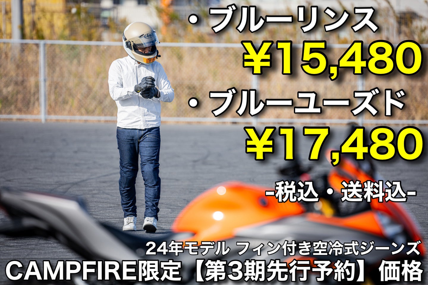 過去2回の先行予約にて、ライダーの皆様の【フィン付き空冷式ジーンズ】への熱を感じる事ができ開発者として大変嬉しく思います。本当にありがとうございます!「第2期先行予約に間に合わなかった」「第1期も第2期先行予約を知らなかった」と3月中に複数お声を頂いております・・・