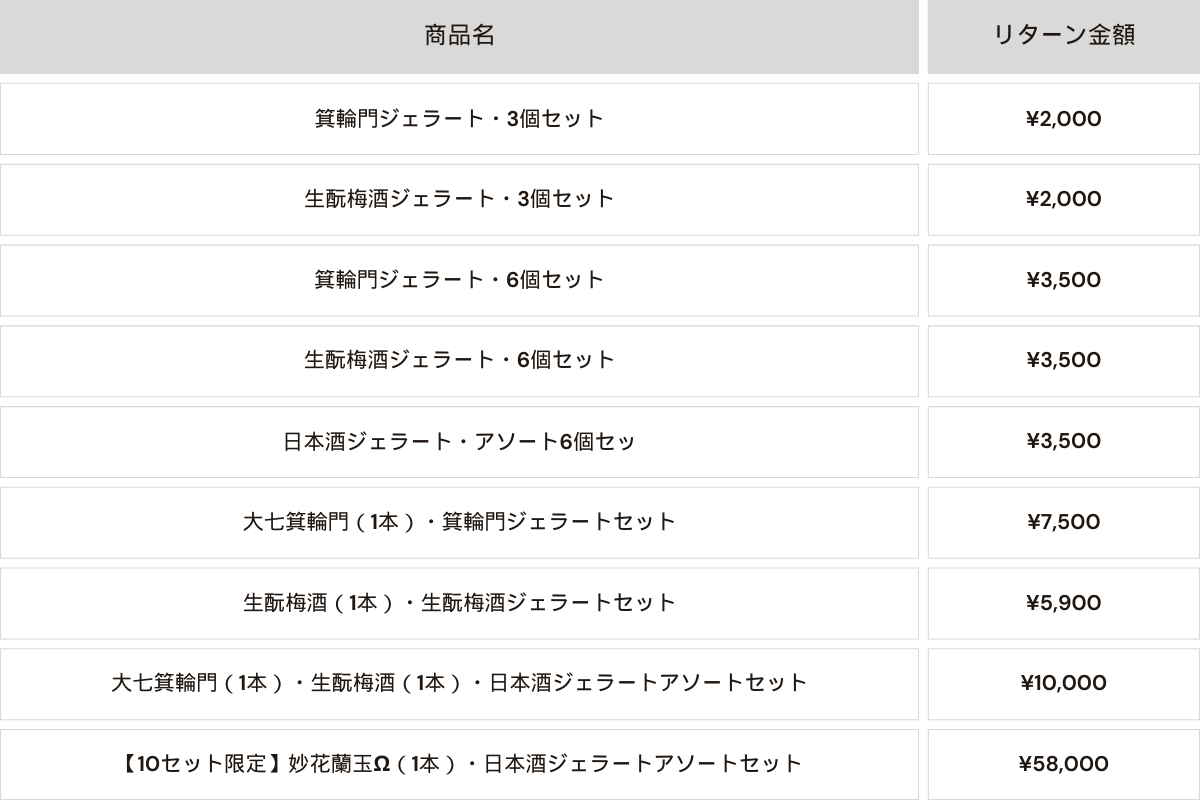 ※20歳未満の者による飲酒は法令で禁止されています。20歳未満の方はこのリターンを選択できません。
