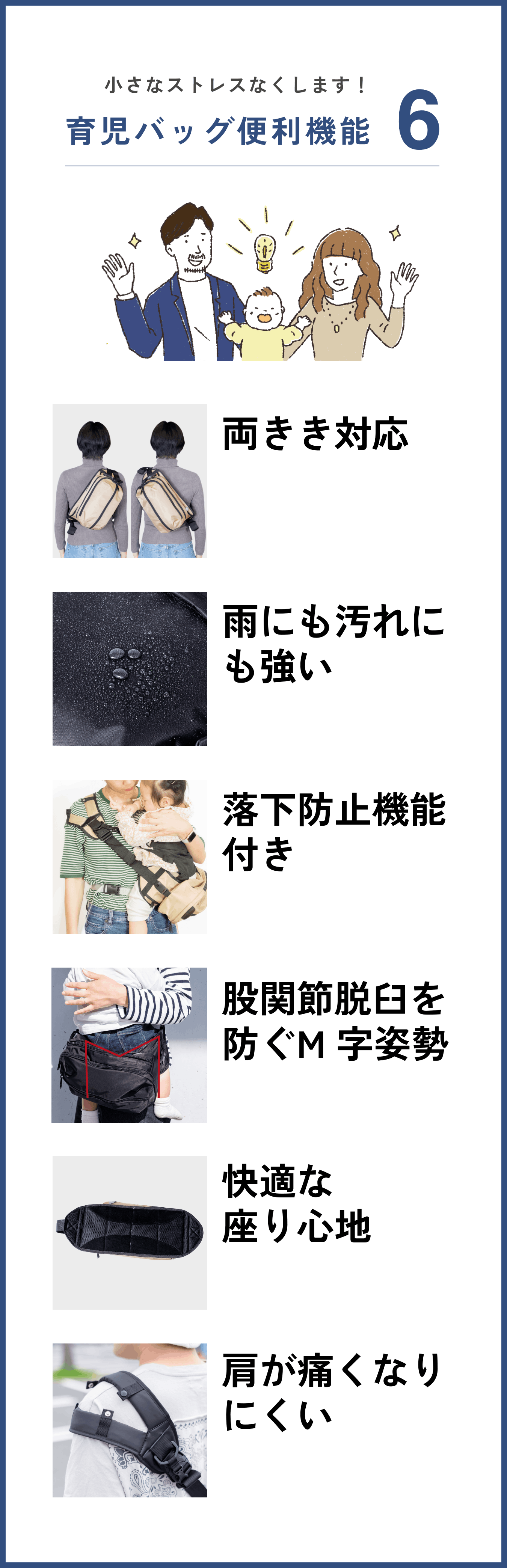 このタイプのデザインの抱っこバッグは、お子さまを乗せると荷物を取り出しにくくなりませんか?