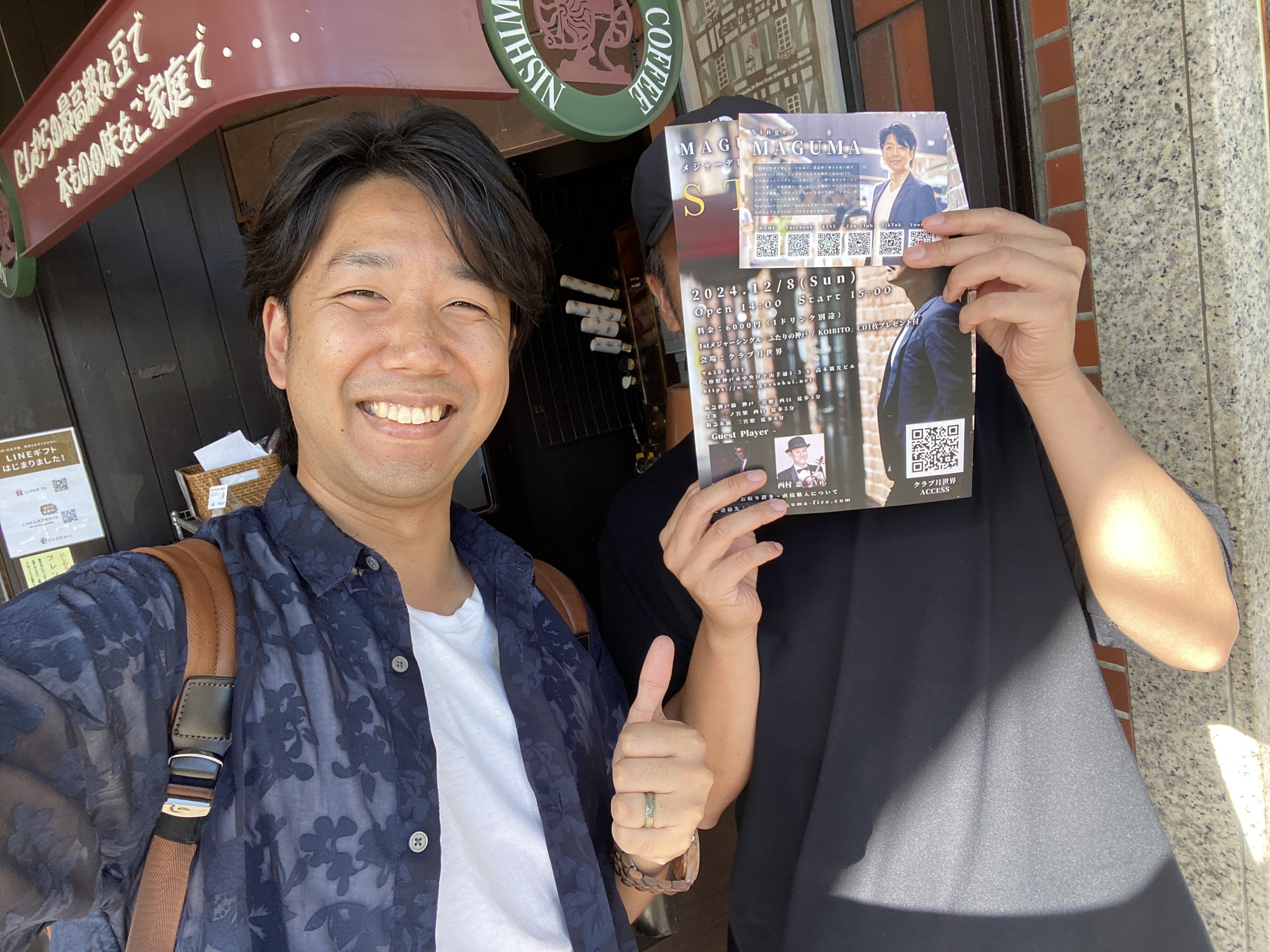 2024/10/28 19:04いよいよ、メジャーシングル「ふたりの神戸 / KOIBITO」のCDジャケットが各インターネットショップにて解禁となりました。メジャーとして世にでる最初のショット。いかがでしょうか?爽やかな笑顔と爽やかな神戸(笑)。これがこれからたくさんの人の手に届くと思うと感慨深い。11月20日全国リリースされて12月8日のクラブ月世界ソロコンサートでさらに発信を加速させていきます。お待たせしているリターンも、11月20日から順次発送に移らせていただきます。とにかく、このいただいたチャンスを無駄にしない!今から未来を築くための基盤をとにかく学びと実践を繰り返しながら育んでまいります。どうか、応援してください! もっと見るメジャーデビュー記念ソロコンサートの映像化!