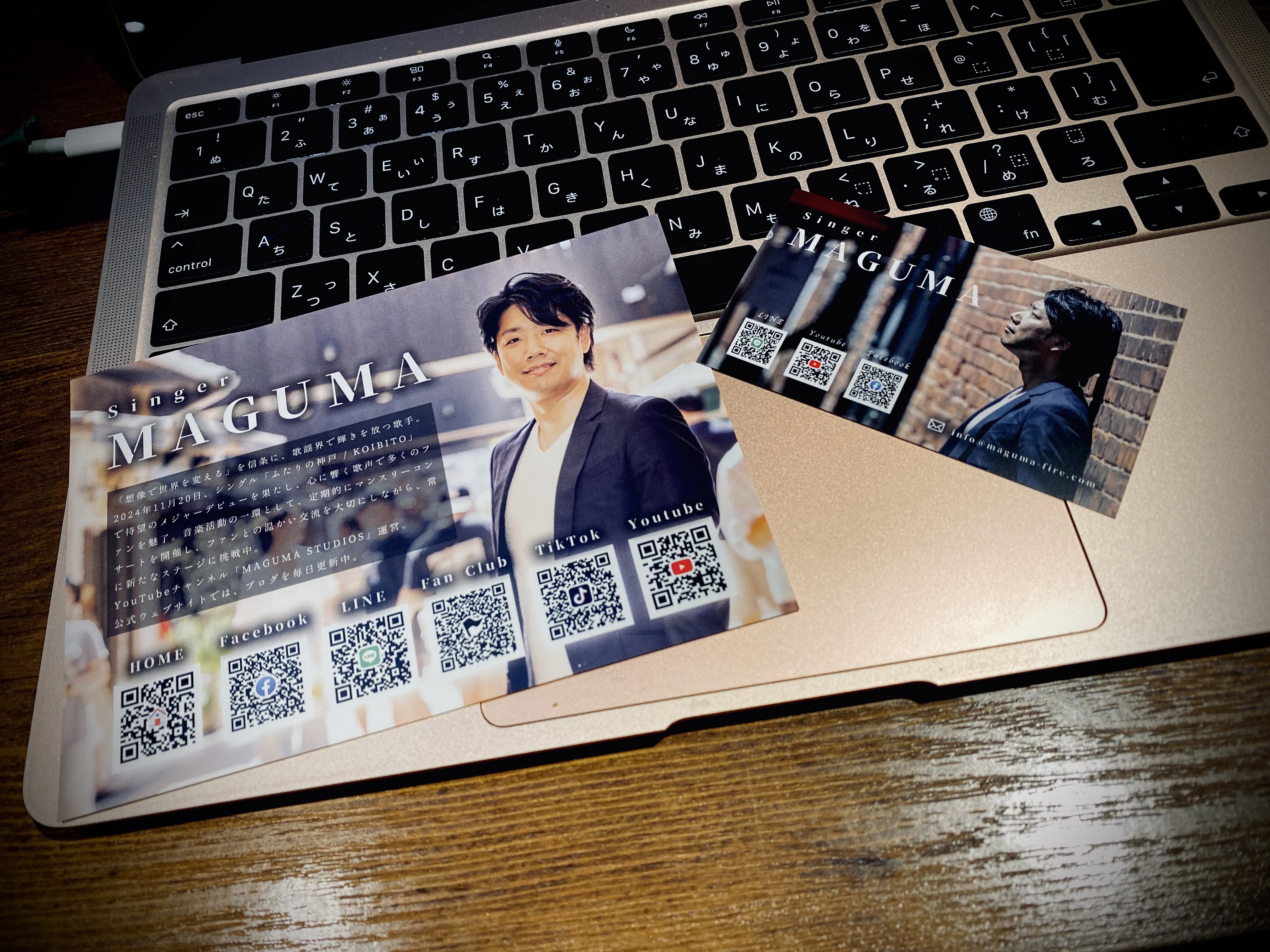 映画監督やら作家やらと肩書きをたくさん載せていましたが、歌謡界の歌手としてメジャーデビューをするにあたって、まずはメインである歌手としてのMAGUMAをプッシュしようということになり、フライヤーも名刺も、肩書きを歌手オンリーとさせていただきました(映画制作や脚本の執筆についても継続していきます)。