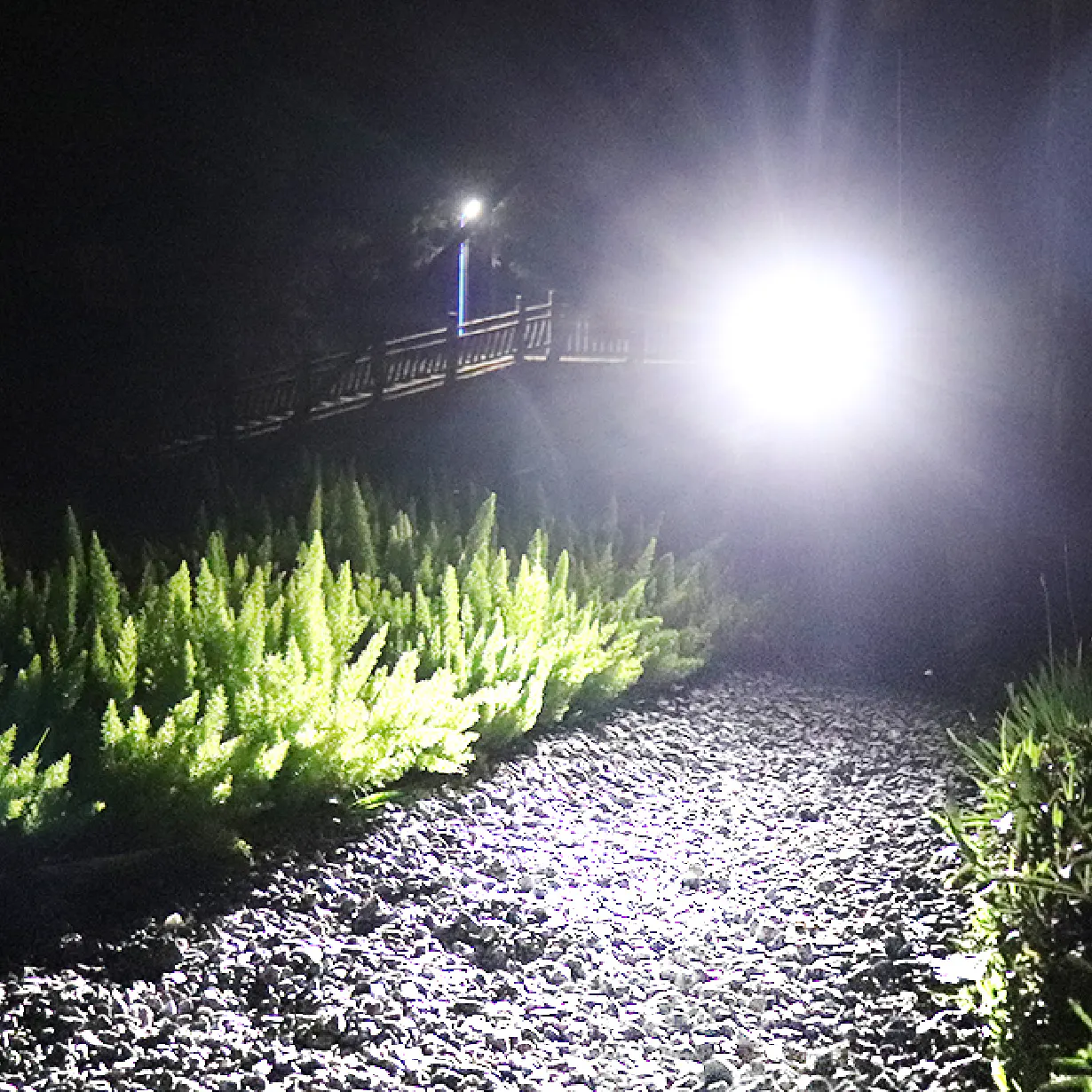 スマホのライトでは、足元は照らせても道の先を照らすことはできません。