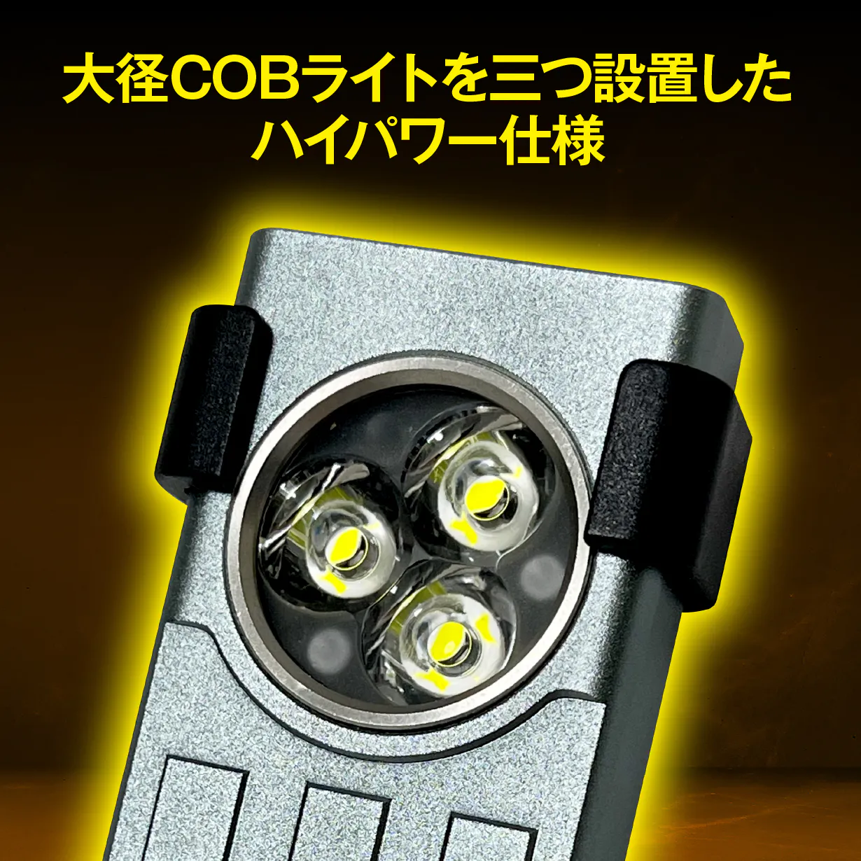 明るさの秘密は、正面に設置した大径三連COBライトです。