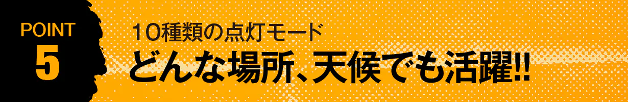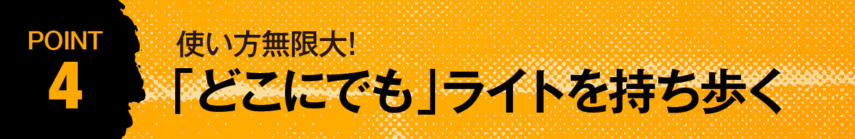 この驚異的な明るさは、アウトドア・災害時・夜間作業など様々なシーンでご活用いただけます。
