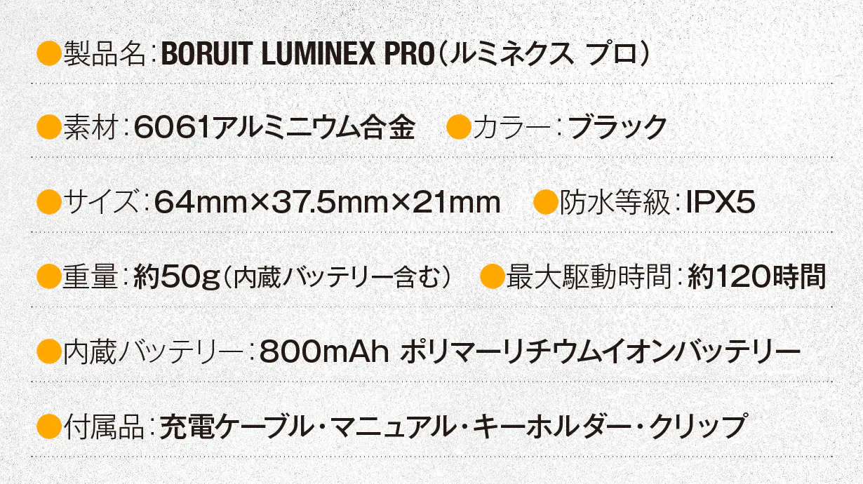 小型ライトとして最大級の明るさを求めたLuminex Pro(ルミネクスプロ)。