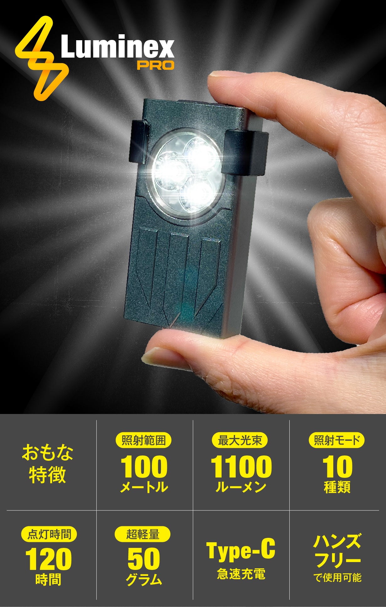 小型ライトとして最大級の明るさを求めたLuminex Pro(ルミネクスプロ)。
