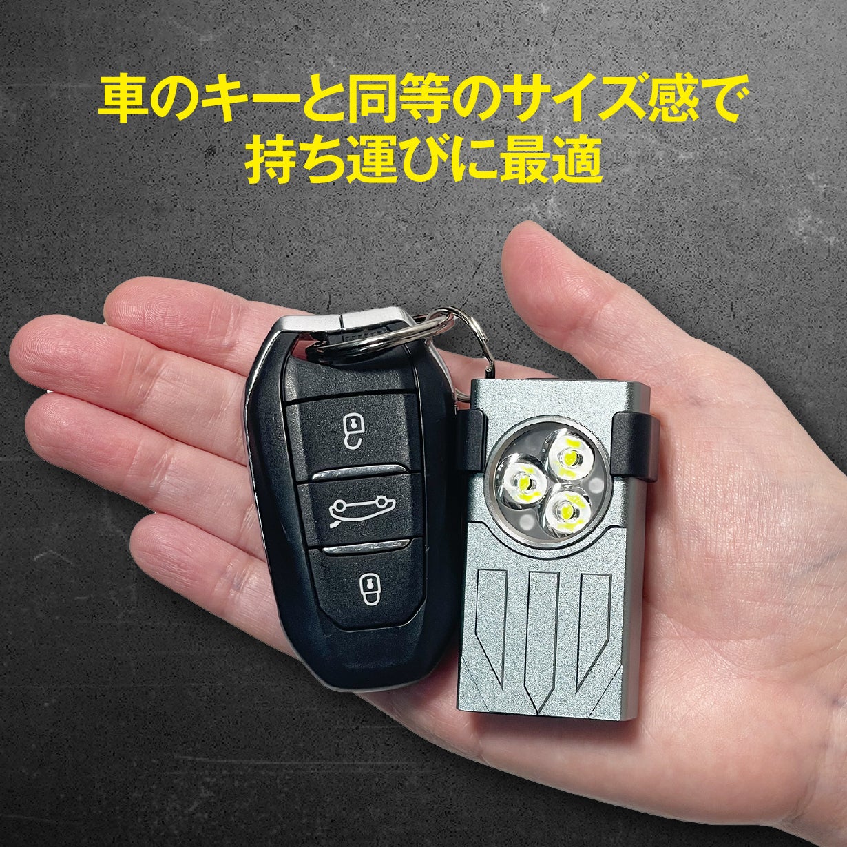 車のキーと一緒に持ち歩いても違和感がありません。