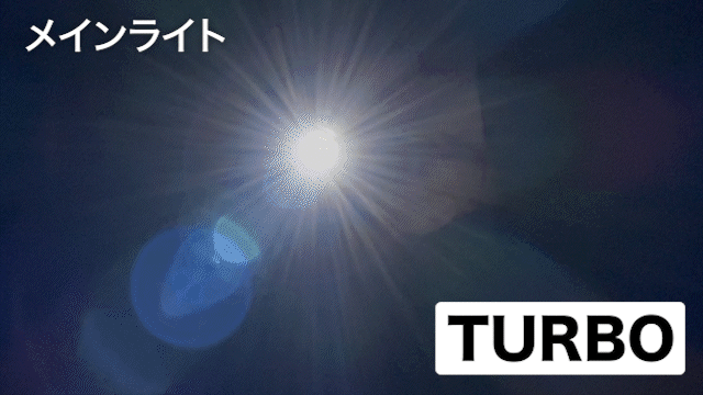 明るさの秘密は、正面に設置した大径三連COBライトです。