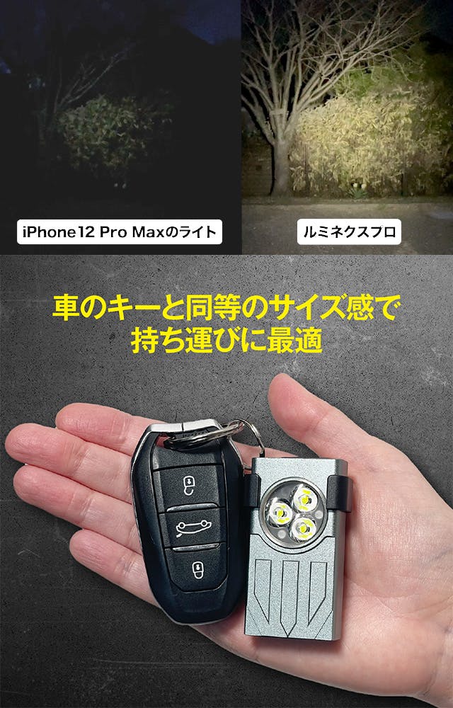 「キーホルダーサイズに1100ルーメンのハイパワー!夜間を昼間に変えるライト ルミネクスプロ」