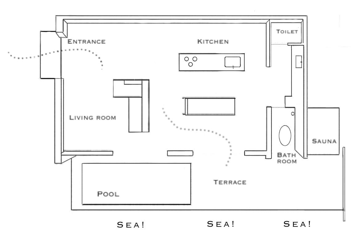 今回、ヴィラを作るにあたり、オーシャンビューサウナとオーシャンビュープールを1棟につき1つずつ作る予定です。