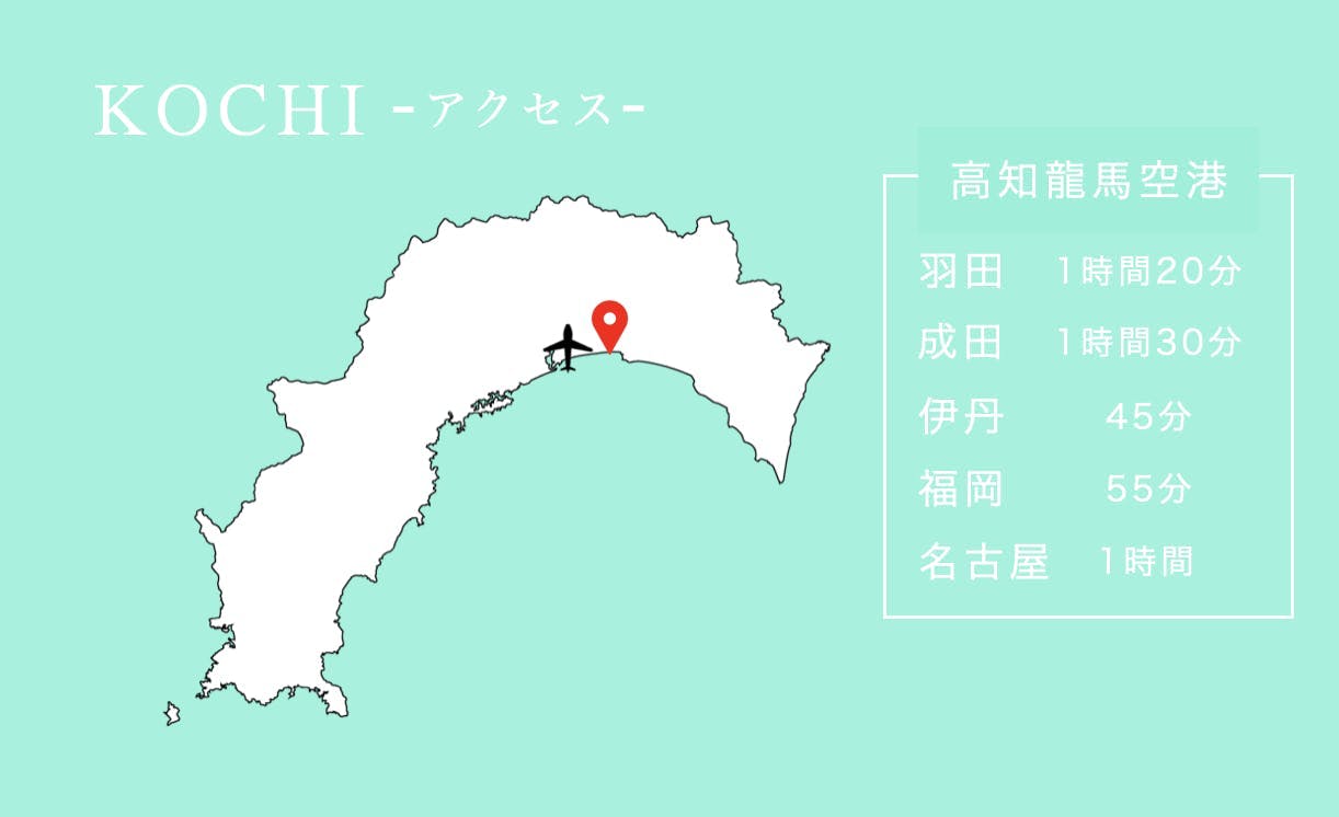 実は、高知県は東京から飛行機で約80分、大阪からは約45分で来られる場所なんです。