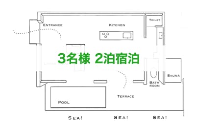 3名様まで泊まれる1泊宿泊+プライベートサウナ&プライベートプール権利です。