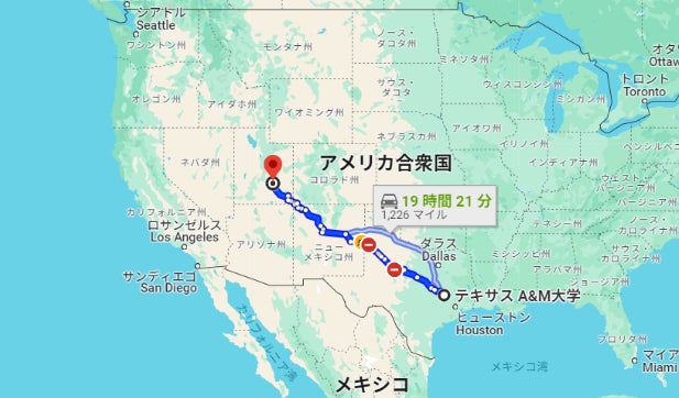 なんと、テキサスから大会場所までは約2000kmあるため、車で1日以上かかります!!