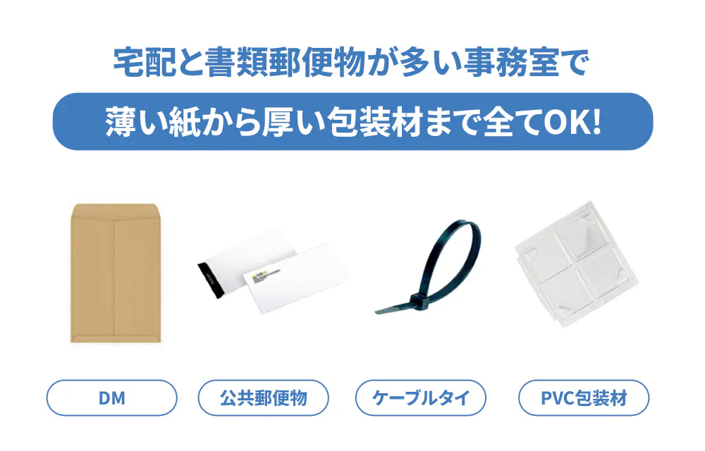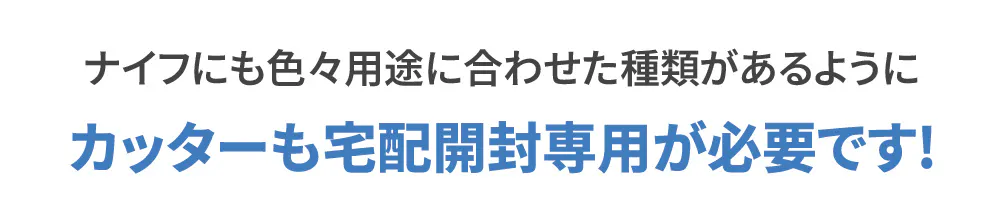 宅配ボックスからビニール、袋、ラベル、デリバリー料理の包装紙、ステッカー、DMなどまで切ることができるカッターです。