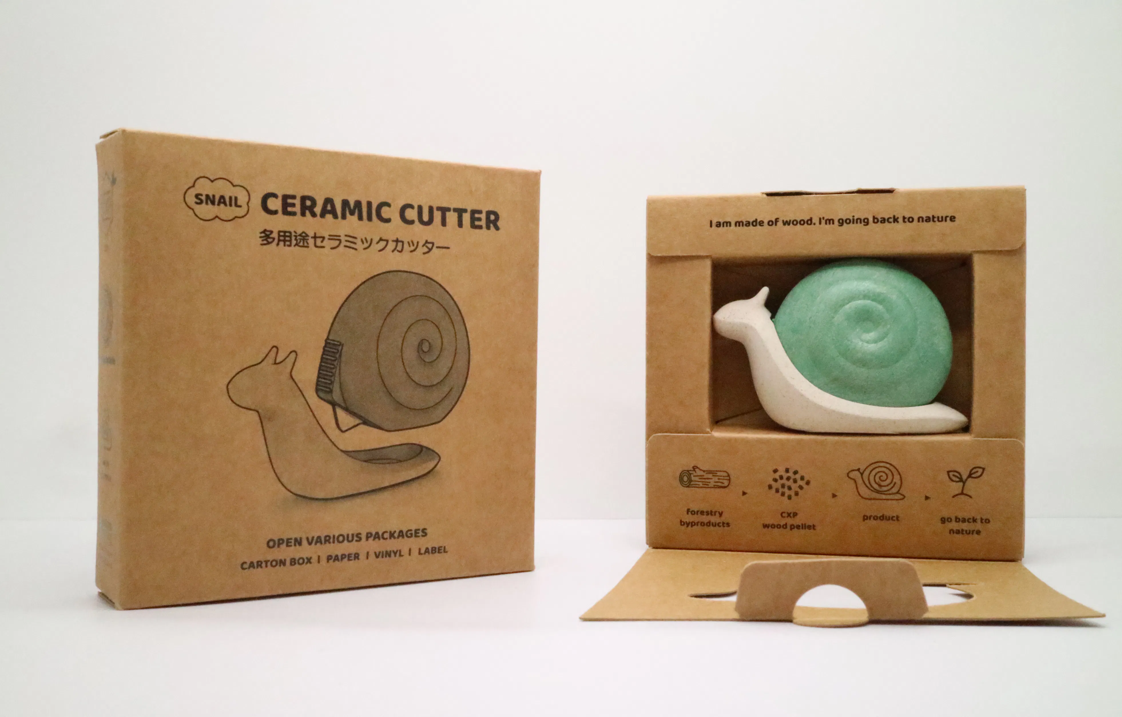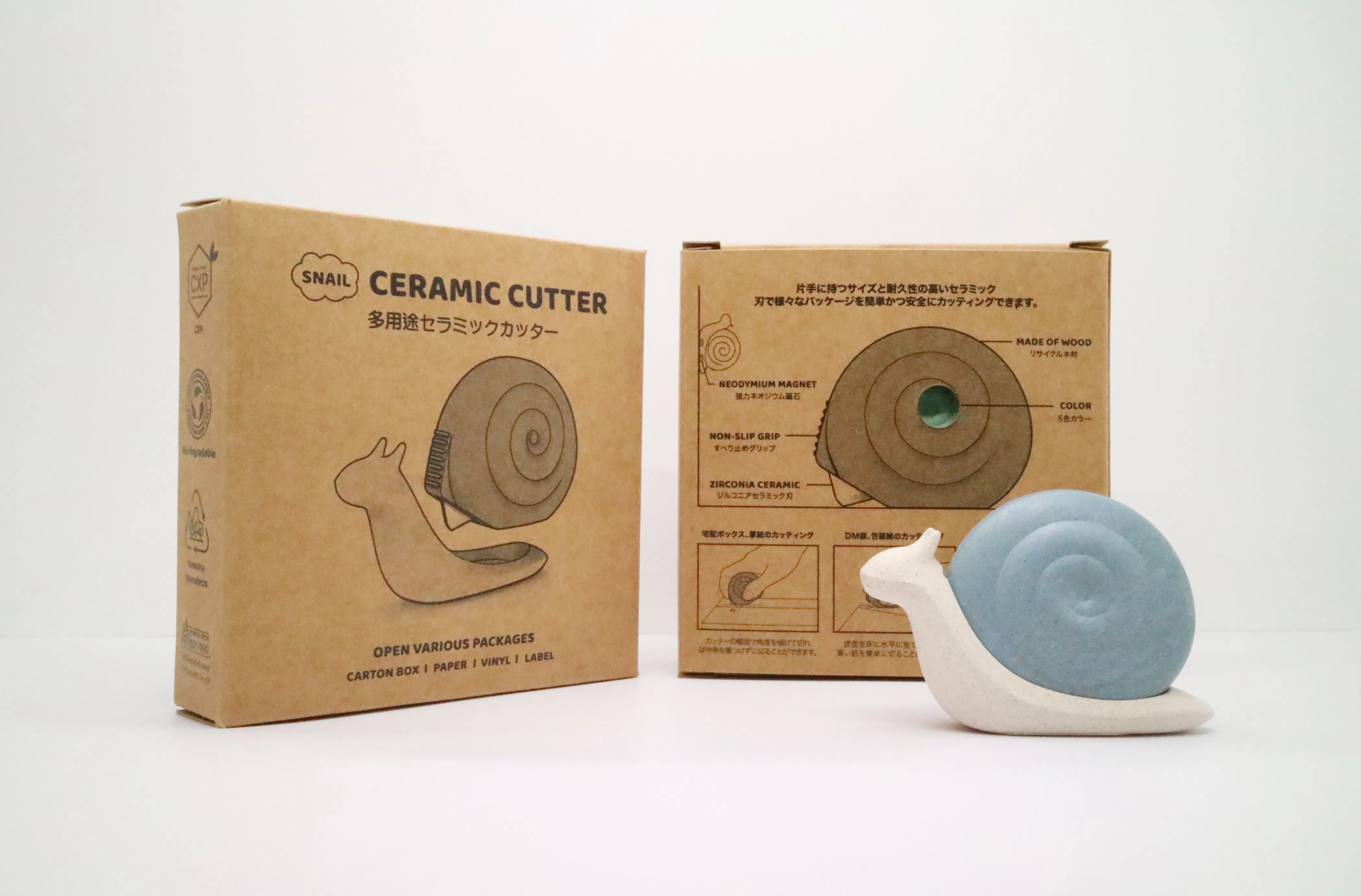 この小さくてかわいいカタツムリ一つで十分です。さくて楽に使い専用セラミック刃で安全に使えるカッターツムリ!