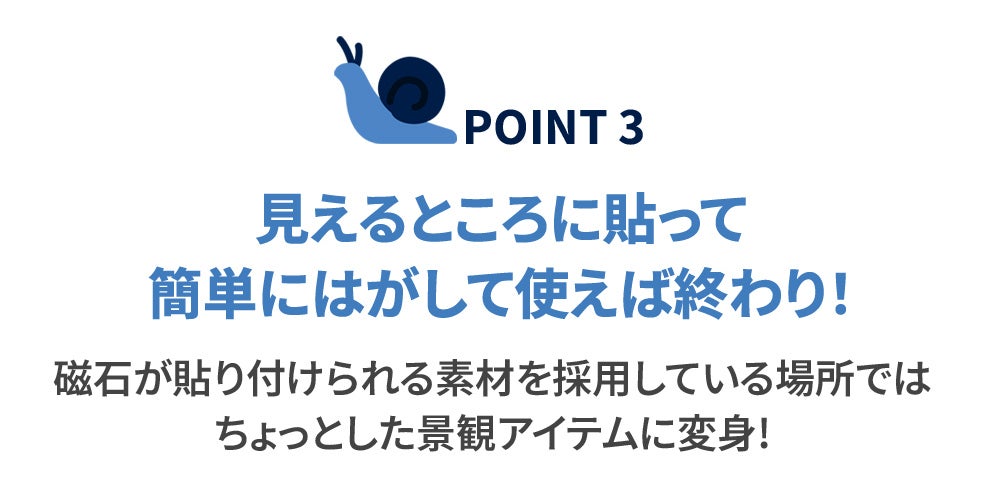 強力なネオジウム磁石がなんと3つも?! 玄関ドア、冷蔵庫、パーティションなど鉄材類にはどこでも貼り付けて使用できます。
