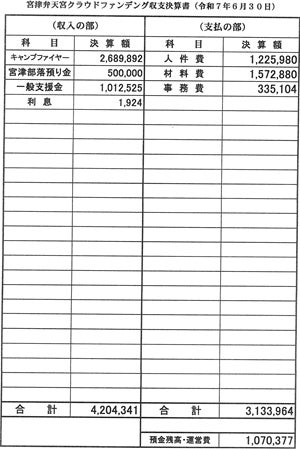 こんにちは!島の文化財の宮津弁天宮の会議を今日で全部が終わりました。収支決算書の報告です、観光客が参拝後に御朱印を初穂料にて購入されています。支援者に感謝です。090-5984-1384、明上雅孝。有志一同。