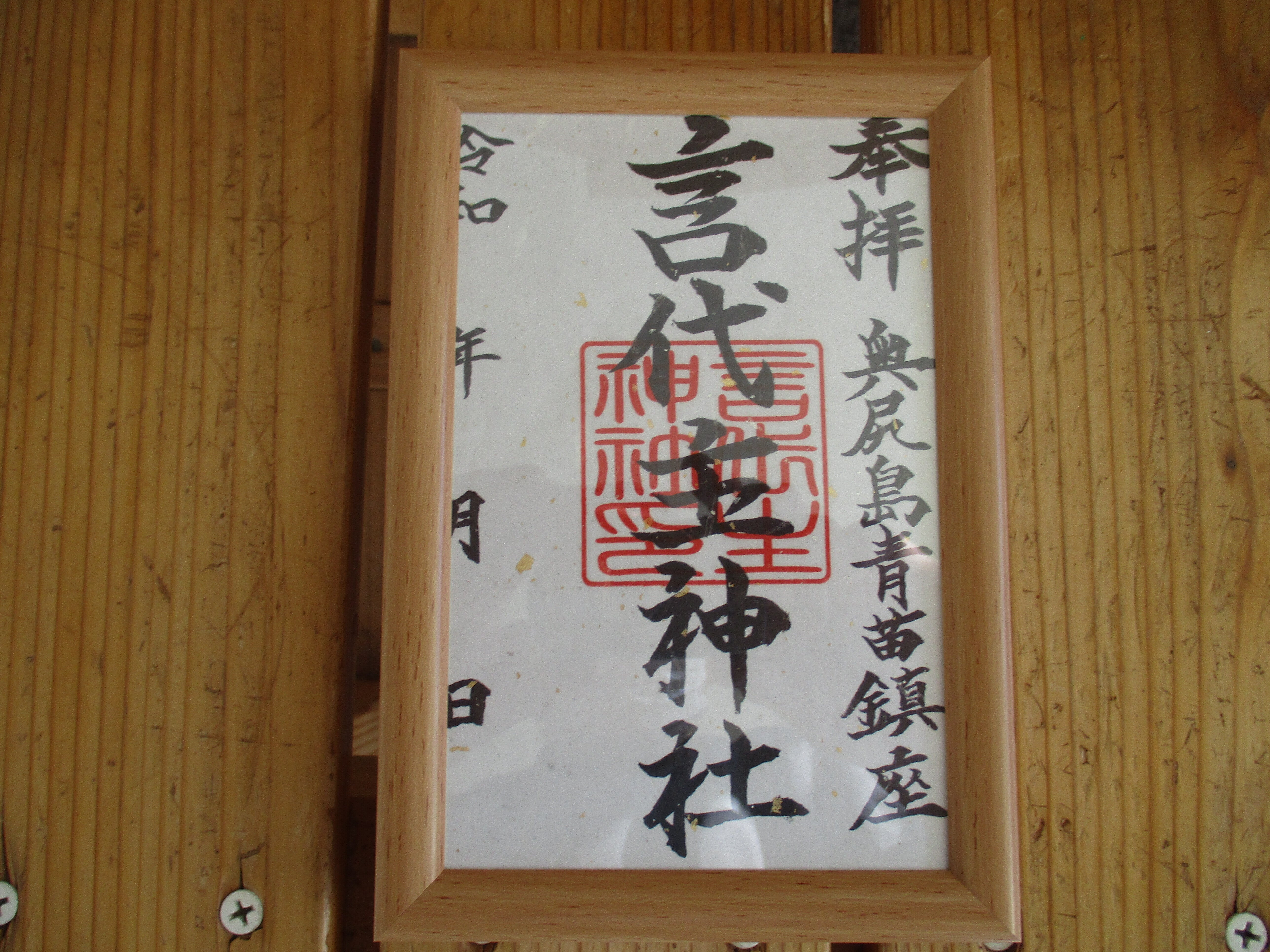 こんにちは!事代主神社の社務所完成の御朱印です、琥珀アンダーソンさんから奉納された絵柄の御朱印です。例大祭の風景、奉納の、のぼり、歌手の鳥羽一郎さんから奉納の鈴、島のお酒、ワイン、島の紫ウニなどをあしらえました。来島記念には1枚1000円で初穂料にて購入されています。維持費を助けて頂いています。クラウドファンデングの支援者には感謝です。神社内の整備も2年もかかりましたが案内板に記載しましたので、宮司さんは常勤していませんが歴史を刻んでますのでわかりますよ。後世に伝わります。明上雅孝。