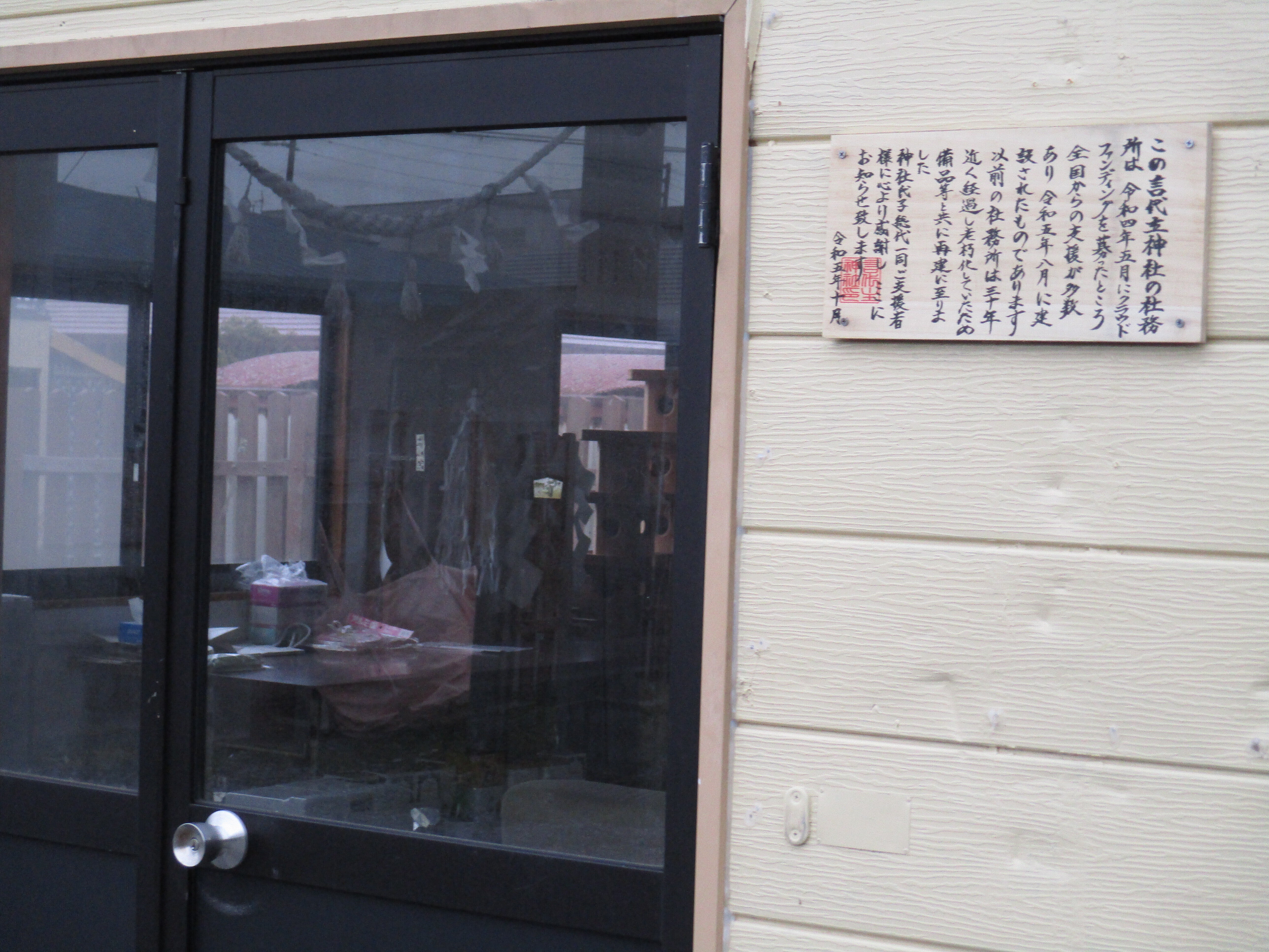 こんにちは!事代主神社の社務所に掲示しましたクラウドファンデングの社務所完成のお知らせです。支援者には感謝です。こうしておくと、後世に歴史を伝えます。あやふやにならないように。過去の1ページに。明上雅孝。