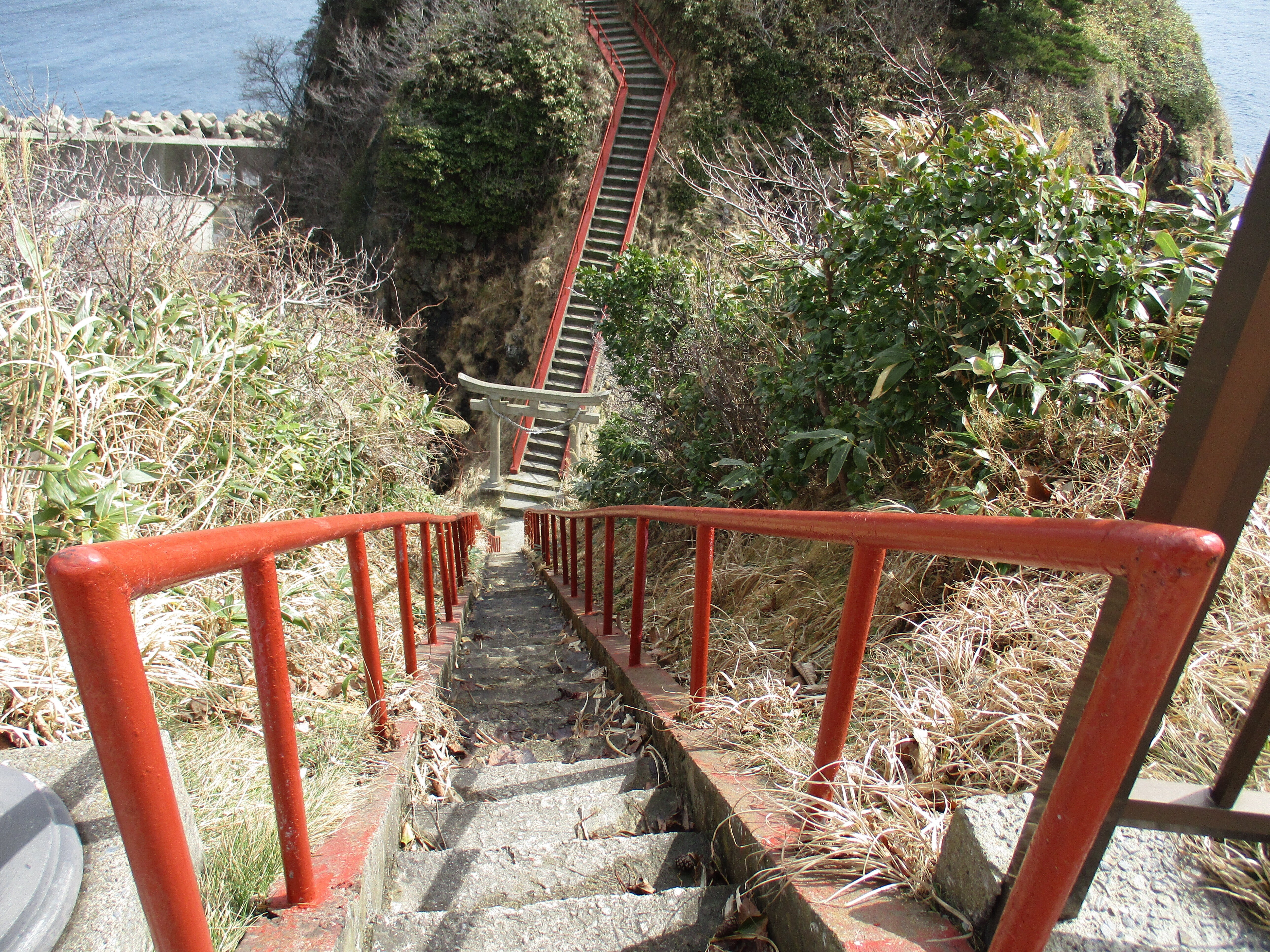こんにちは!宮津弁天宮の164段の階段を下がり上がりして、ようやく神社に到着します。道路の完備の前は、見えています鳥居から上りました。階段は今の半分でした。今は高齢者にはキツイ坂です。つい最近下がりましたがホントにきつく断念しました。明上雅孝。