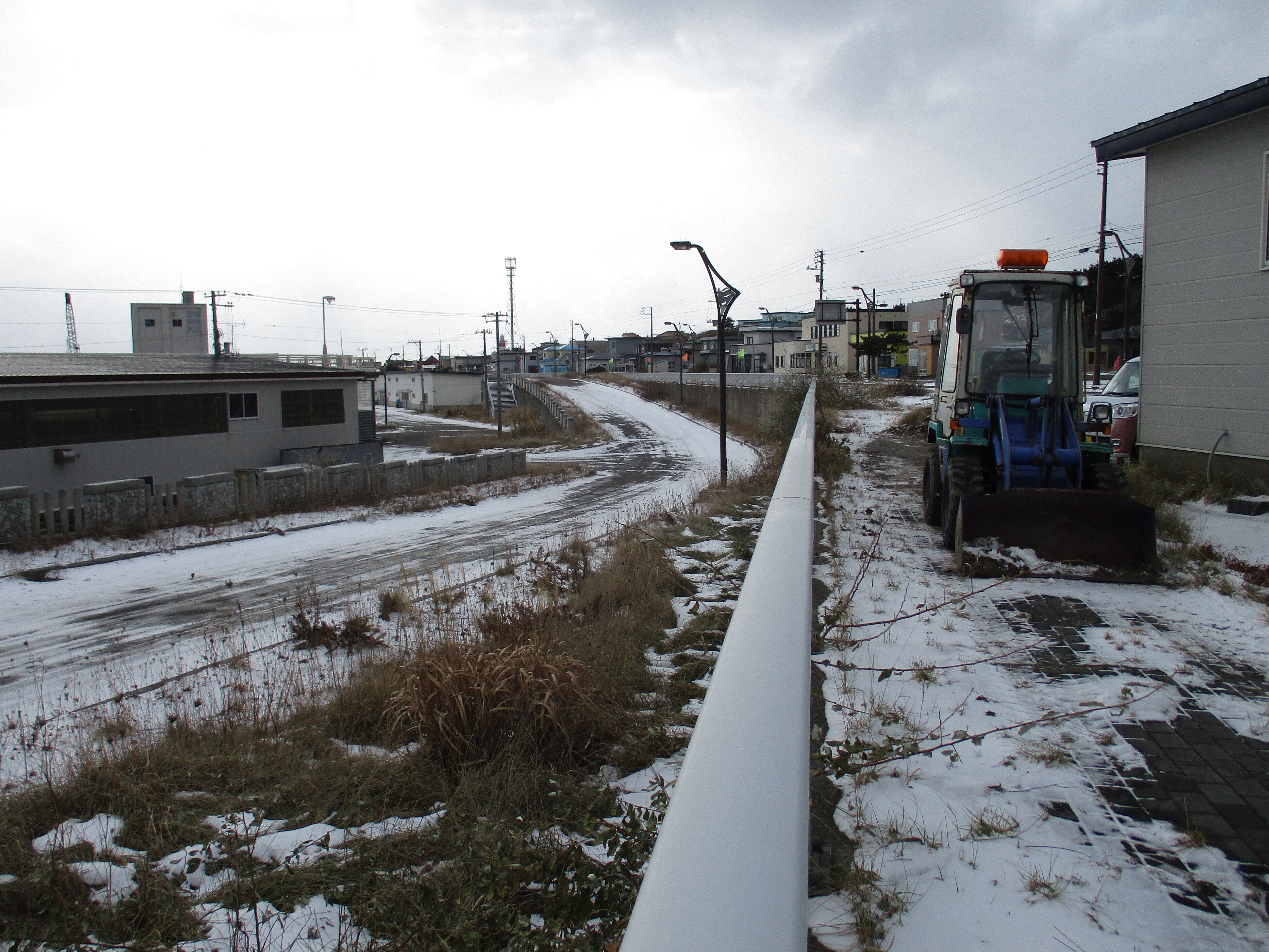 今晩は、見えていますのは青苗です。防潮堤の下の建物は鉄工所とウニ工場があります。人の住んでない工場などは、防潮堤の下に建設できます。防潮堤の上には住宅が建設しなければなりません。明上雅孝。今日の写真です。私も取れるようになりました。パソコンに入れるのは苦労しています。74歳の老兵です。