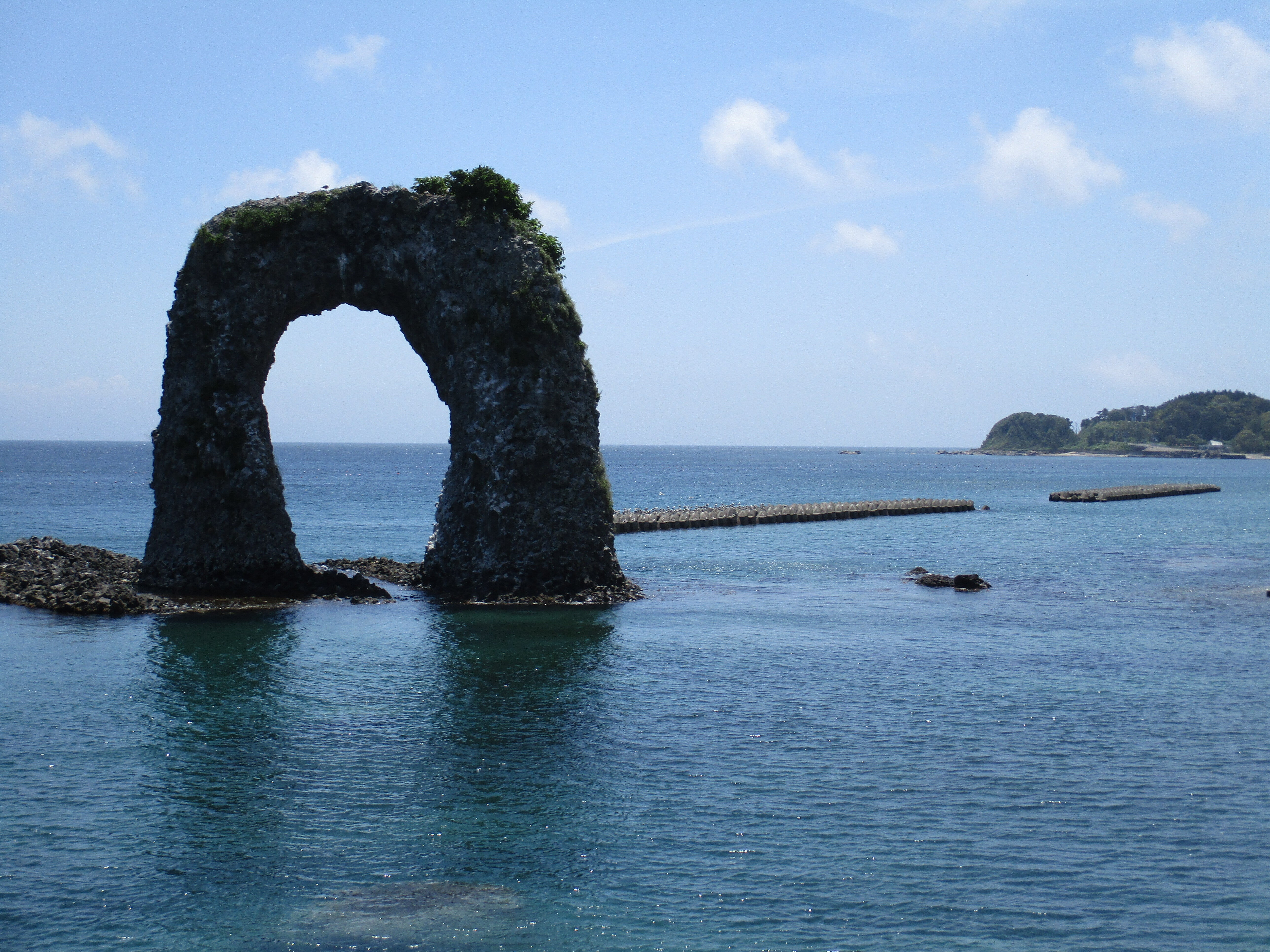 こんにちは!一番人気の島のシンボルの鍋つる岩といいます。19,5メートルの高さがあります。鍋を持つ手に似てるところからきています。岩に上には四季の花が咲きます、32年前の地震災害では少し崩れましたがプラスチックで補充しています。昔は歩いて渡れましたが今は渡れません。矢切の渡しです。今のお願いは今年こそと130万を目標額にクラウドファンディングの実施をしています。18日で終わります。今一度力をお貸しください。後32万円のお願いです。日数も21日間で返礼品も小さくなりました。観光協会の所有権です。役員の決定です。私には会員として、後ろからの活動報告の応援になりました。知らないふりはできません。私なりに諦めないで頑張ります!ウニ丸の完成メールと収支決算書の報告はきちっとします。明上雅孝。