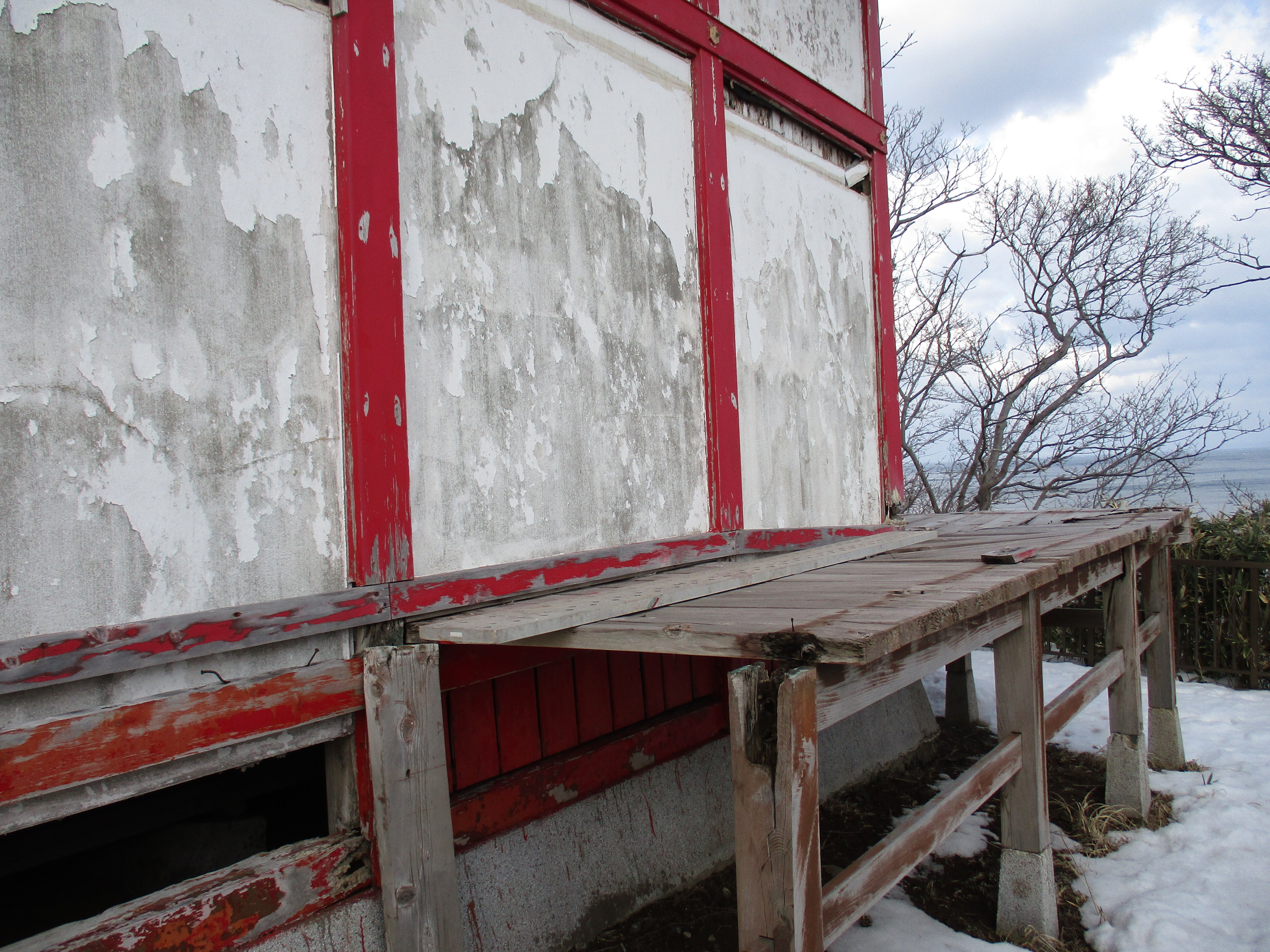 こんにちは!島の文化財の宮津弁天宮です。今日は又雪です。有志の報告では、金具の注文を終えました。地元の調達です。3寸角の材料を手で挙げてテストしようと。天気を見て解体から始めます。みえています回廊も生まれ変わりますよ。土台や壁も。明上雅孝。