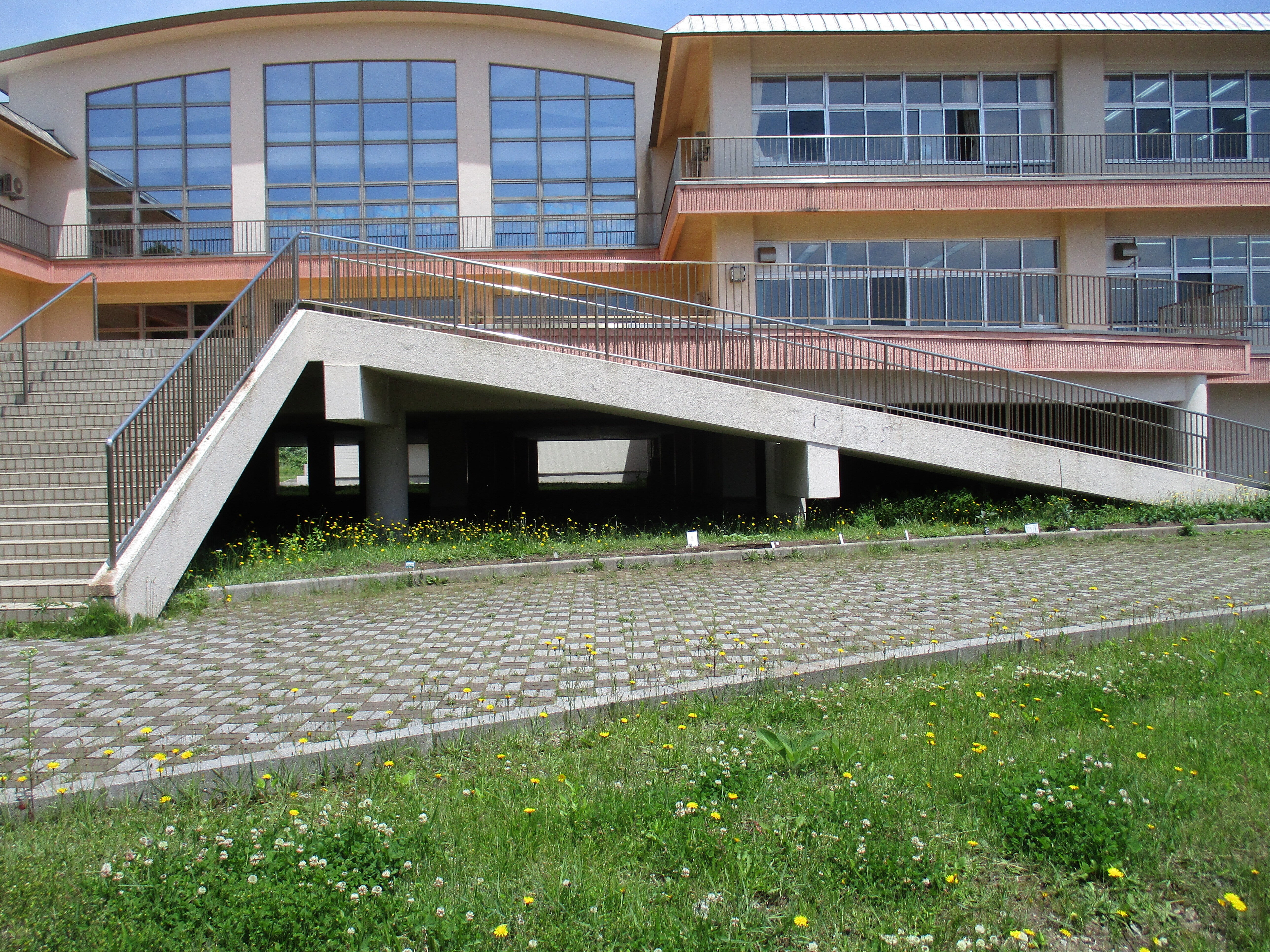 こんにちは!青苗小学校です。地震災害の後は1階を隙間のあるピロティ-方式にしました波が抜けるように作りました。2階からは教室です。1階は車の駐車場に使われています。災害後の知恵ですね。生徒数も少なくなりこのままでは合併も考えられますよ。中学校は既に合併しています。明上雅孝。
