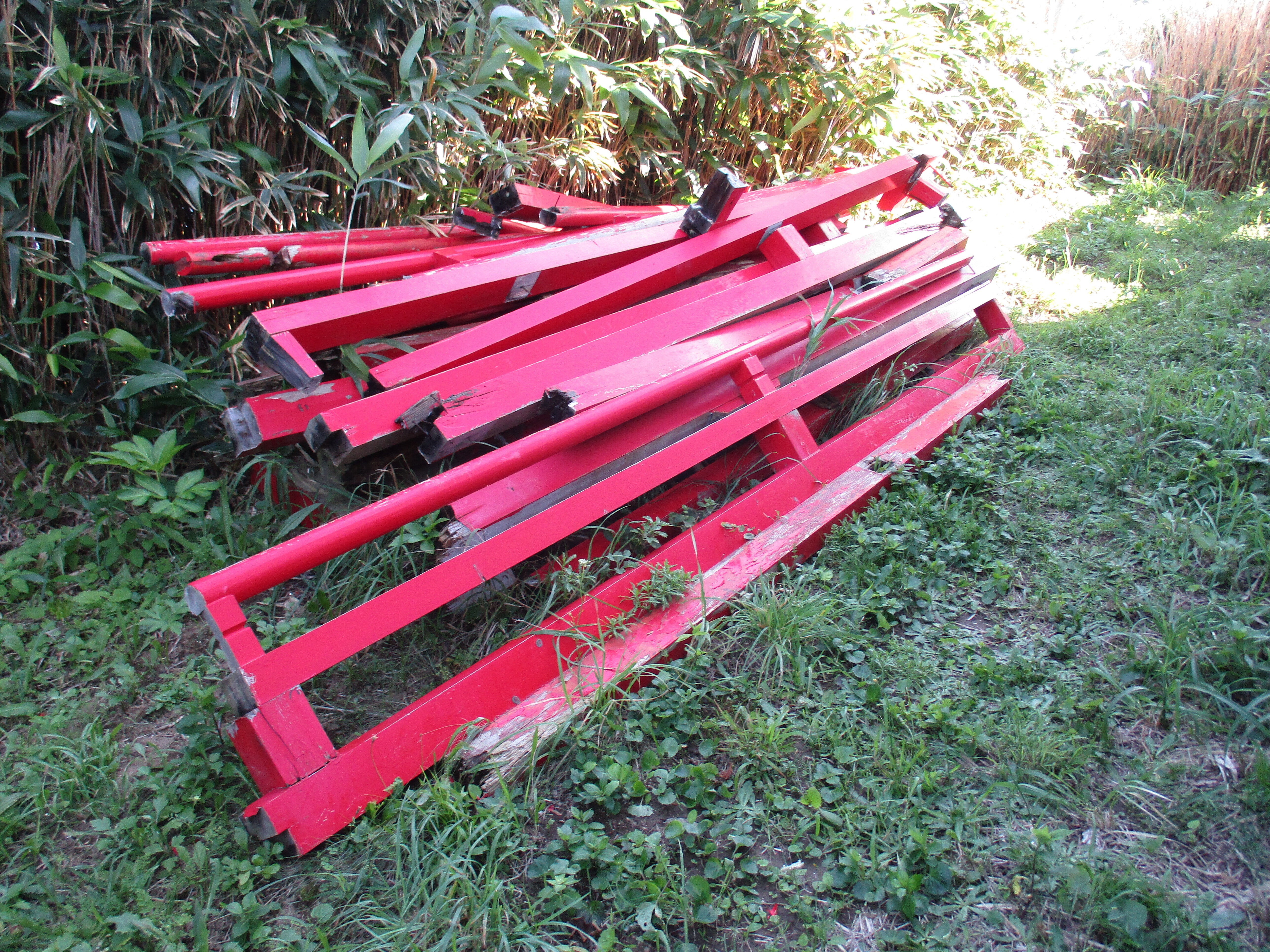 こんにちは!島の文化財の宮津弁天宮の回廊の外れた材料です。今回の修理には使えるものは使います、最後は色での統一です。雪解けの後は材料を手で上げる予定です、3寸角、5寸角、3人1組でロープを付けて運びます。島の杉の予定です。長さが3,6メートルなので途中休みながらです。海抜30メートルはありますので。明上雅孝。
