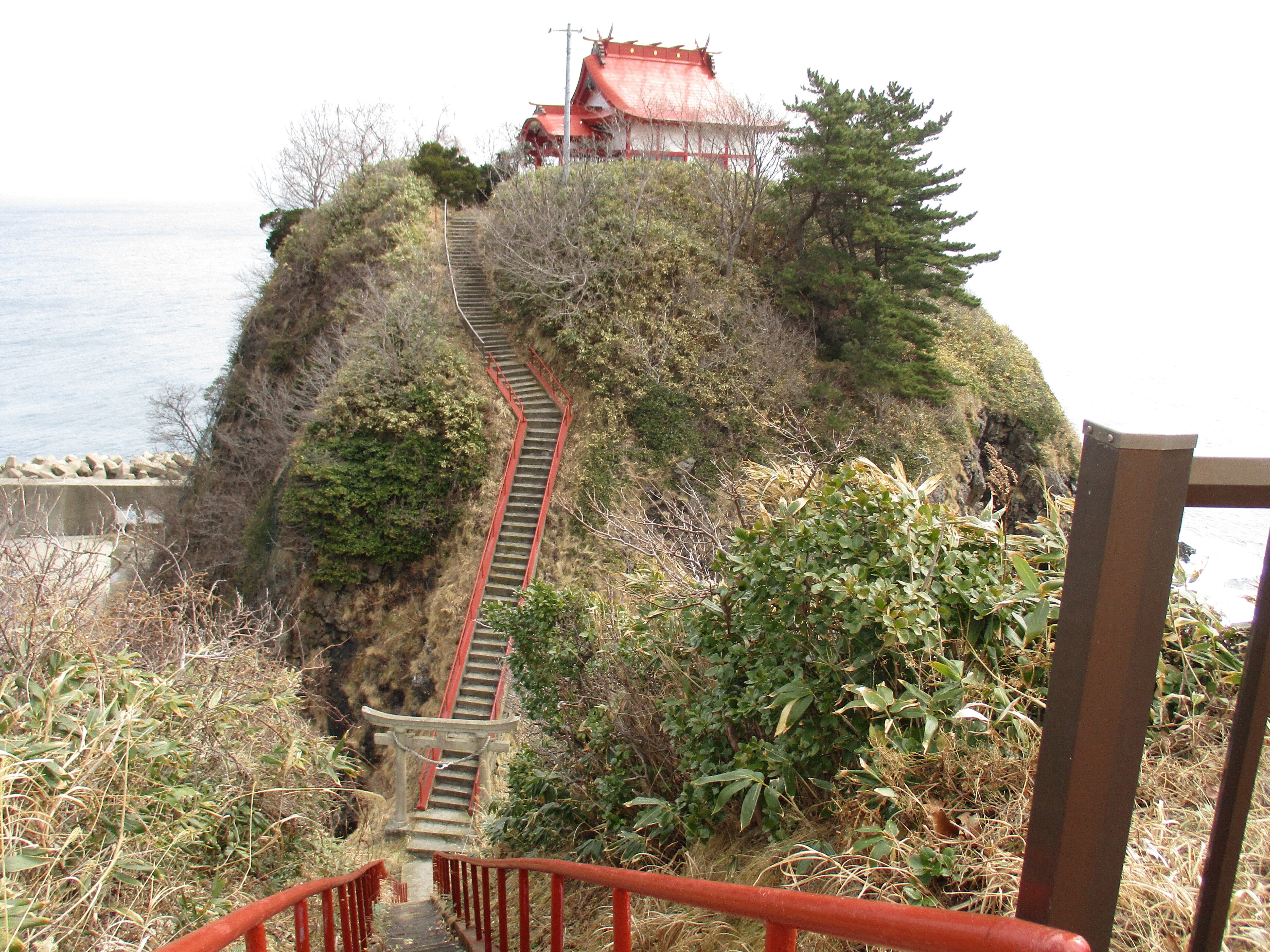 こんにちは!島の文化財の宮津弁天宮です、14日有志で材料の寸法の計測です。みえています鳥居から86段を登ります。厳島神社、宗像三女の関係の宮津弁天宮です。海抜30メートルの高さです。上からの見晴らしは絶景です。お神輿も中にあります。青苗よりは少し小さいですよ。明上雅孝。