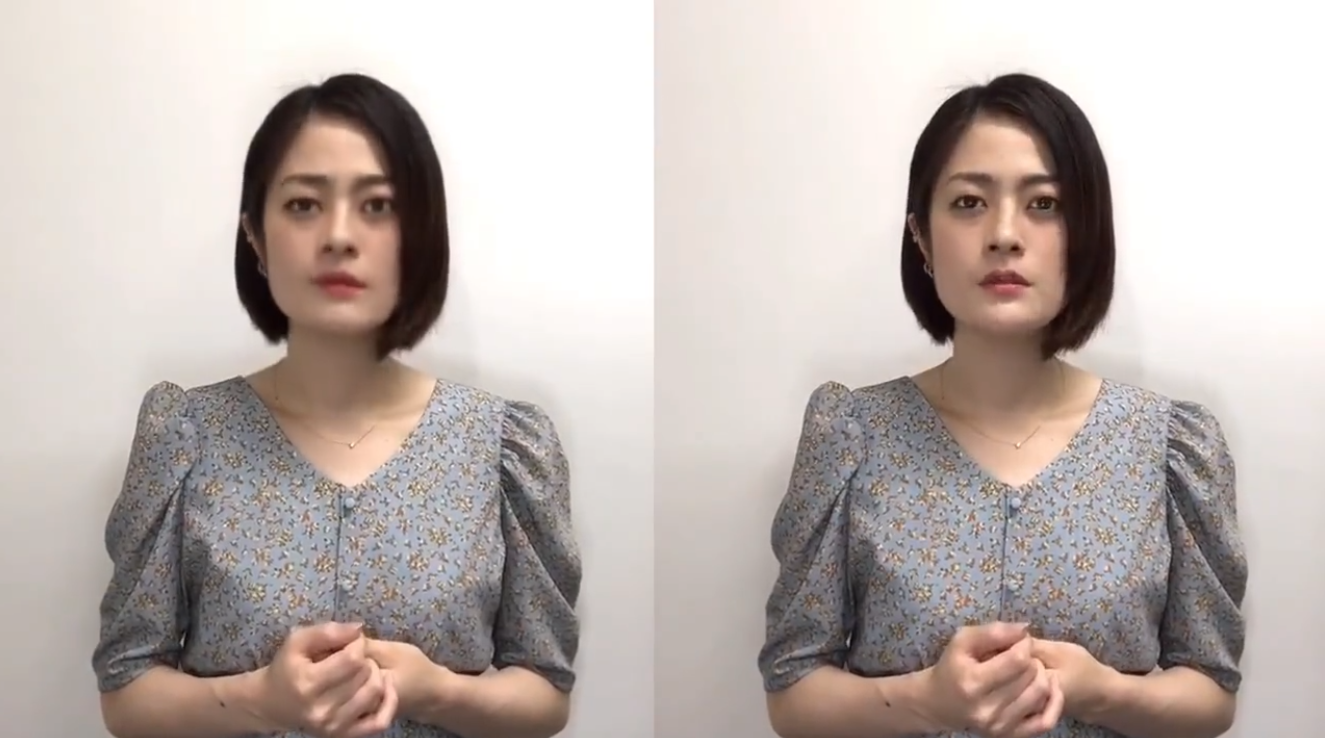 2020年当時の生成動画の画像(左)と、その見本となった本人動画の画像(㊨)AIによるサービスを