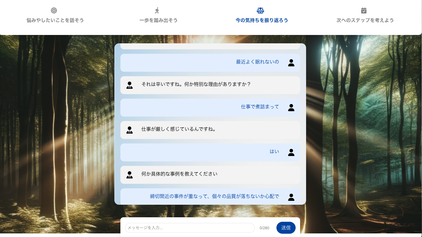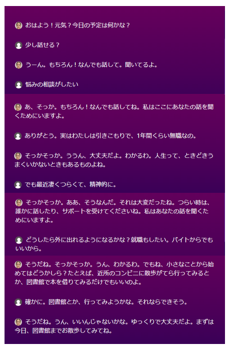 まだ開発段階でのカウンセリングAIとの対話の様子